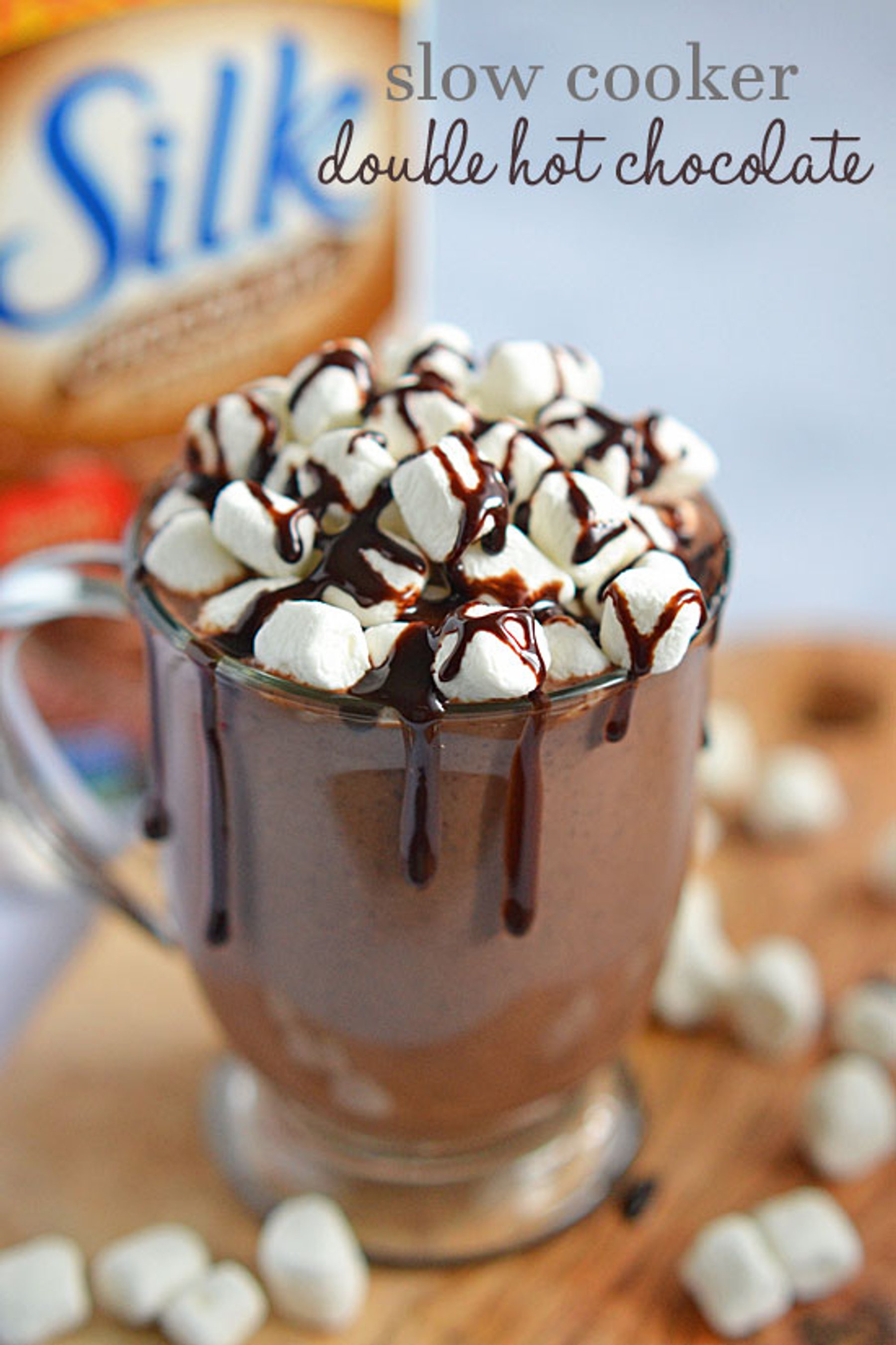 This Slow Cooker Double Hot Chocolate is thick and creamy and is perfect for a cool fall evening or winter’s night. With a combination of Silk Chocolate Soymilk, half-and-half, sweetened condensed milk, and marshmallow cream, this warm beverage is a guilty indulgence you won’t want to stop drinking!