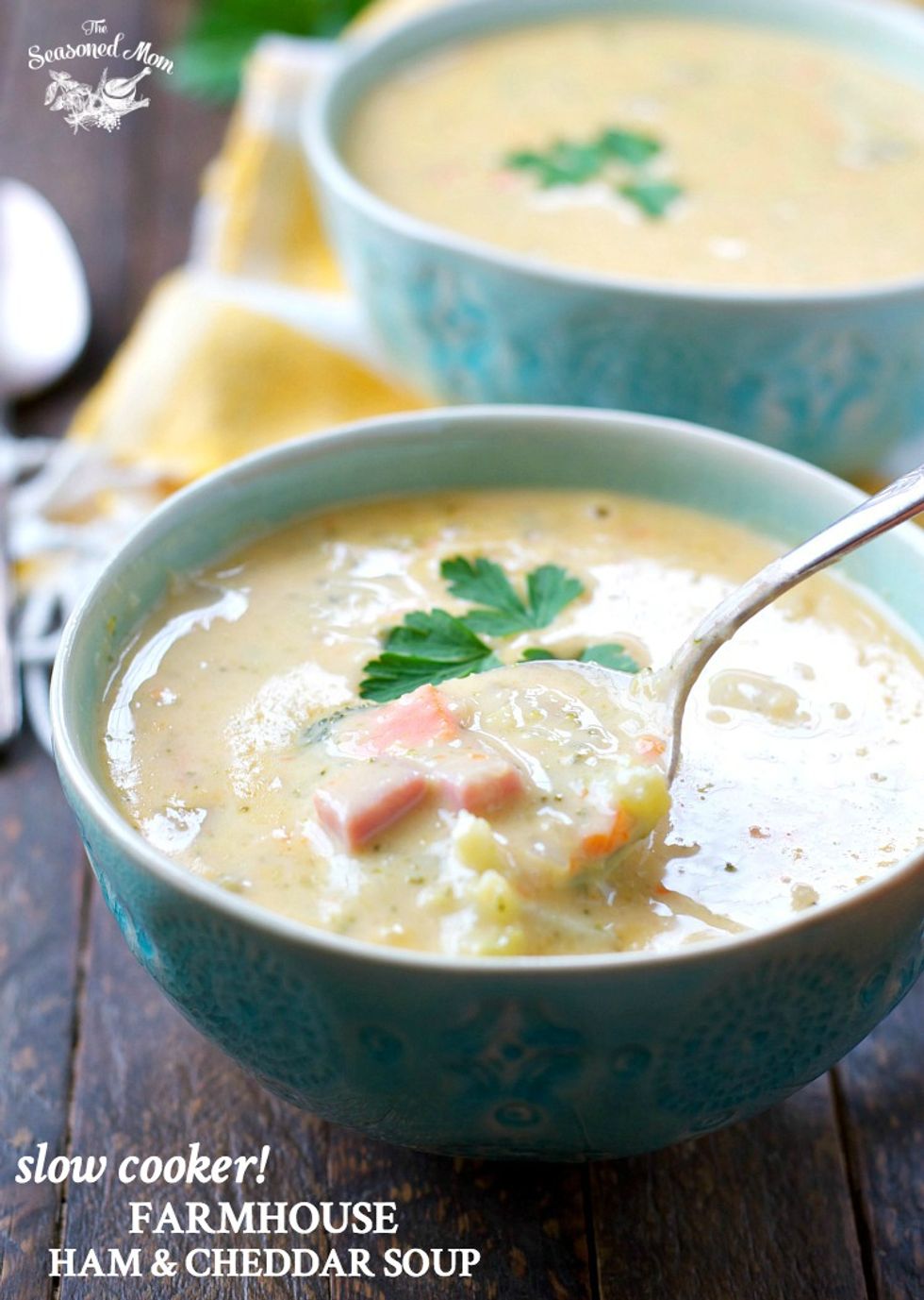 Crockpot Broccoli Cheese Soup is a cozy slow cooker dinner recipe for busy nights -- and a great way to use up leftover ham! This hearty, satisfying soup combines broccoli, cheese, carrots, potatoes, onion, and ham in every bite. Serve the easy broccoli cheese soup alongside a loaf of crusty bread, a basket of buttermilk biscuits, or a pan of honey cornbread for a delicious family meal!