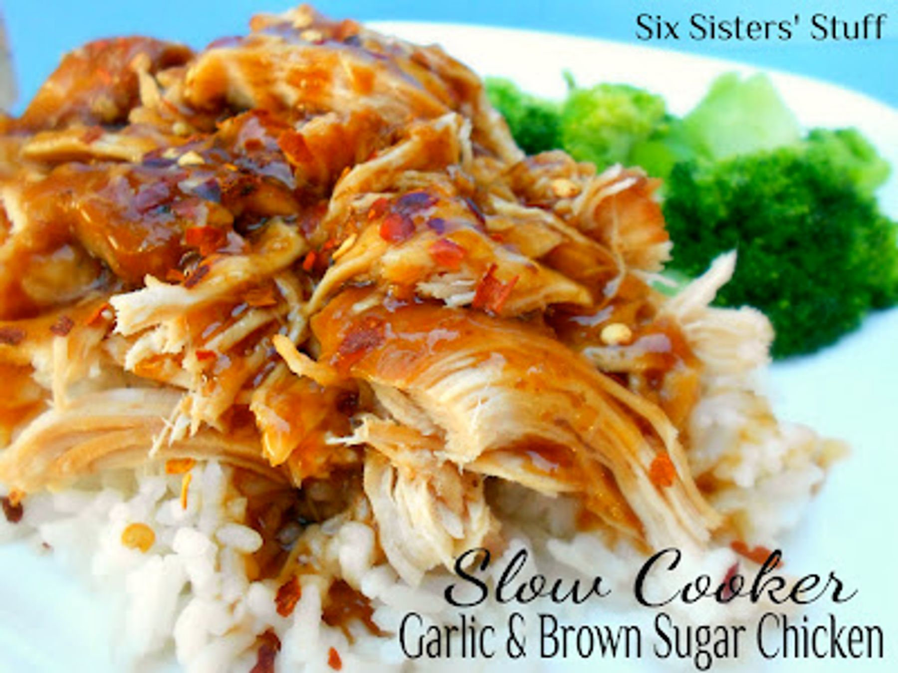 Spray slow cooker with non-stick cooking spray. Place chicken (I used frozen chicken, thawed chicken works great too) inside slow cooker. Mix together brown sugar, vinegar, soda, garlic, soy sauce, and...