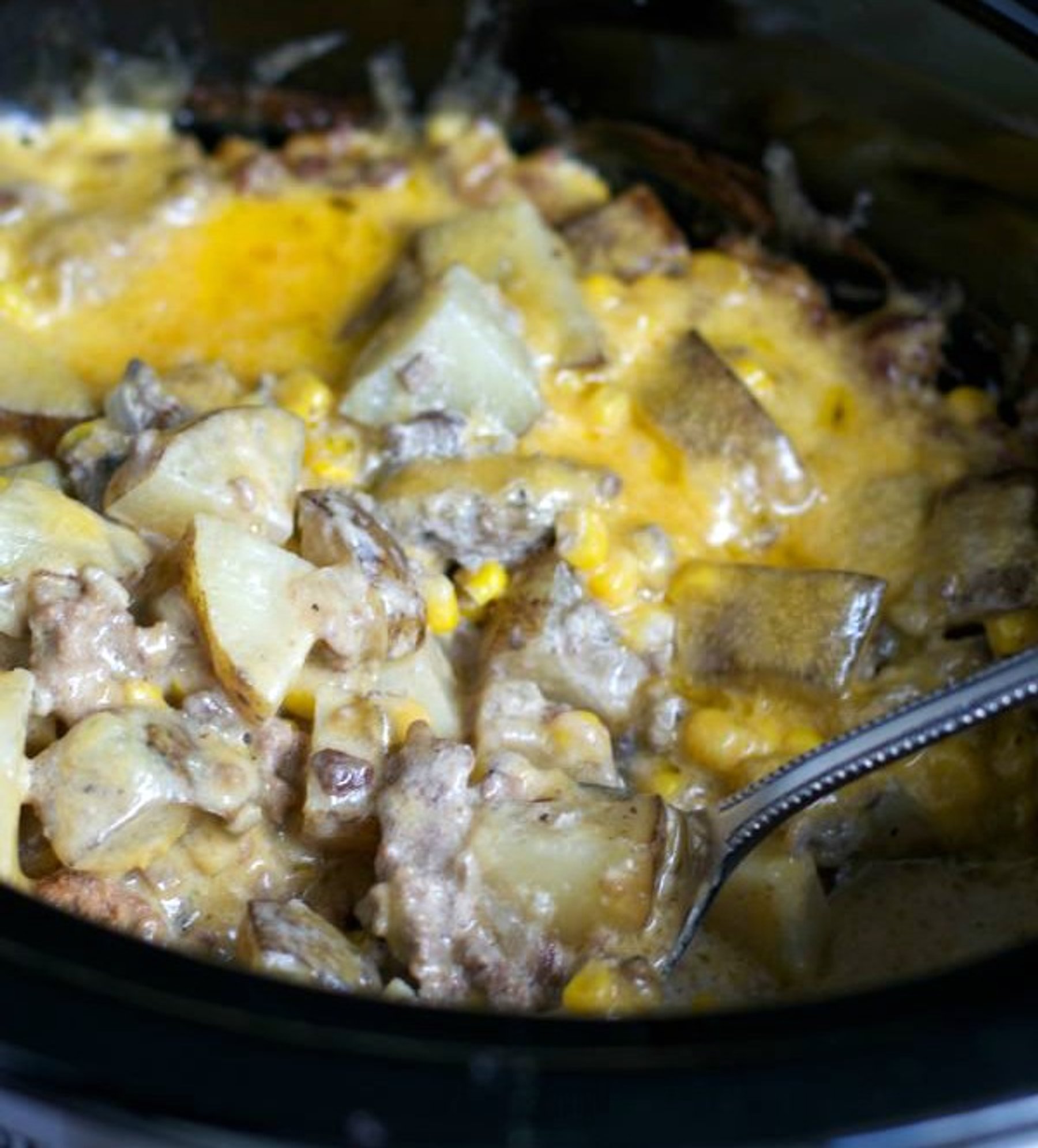 I’ve got a fun recipe for you today. This Slow Cooker Hamburger Hash recipe turns out wonderful! Tender Potatoes, sauce, meat, corn and cheese. This recipe is definitely a keeper! It reminds me of my Tater Tot Casserole Recipe on the blog, but with fresh-cut potatoes instead of tots, and corn instead of green beans.