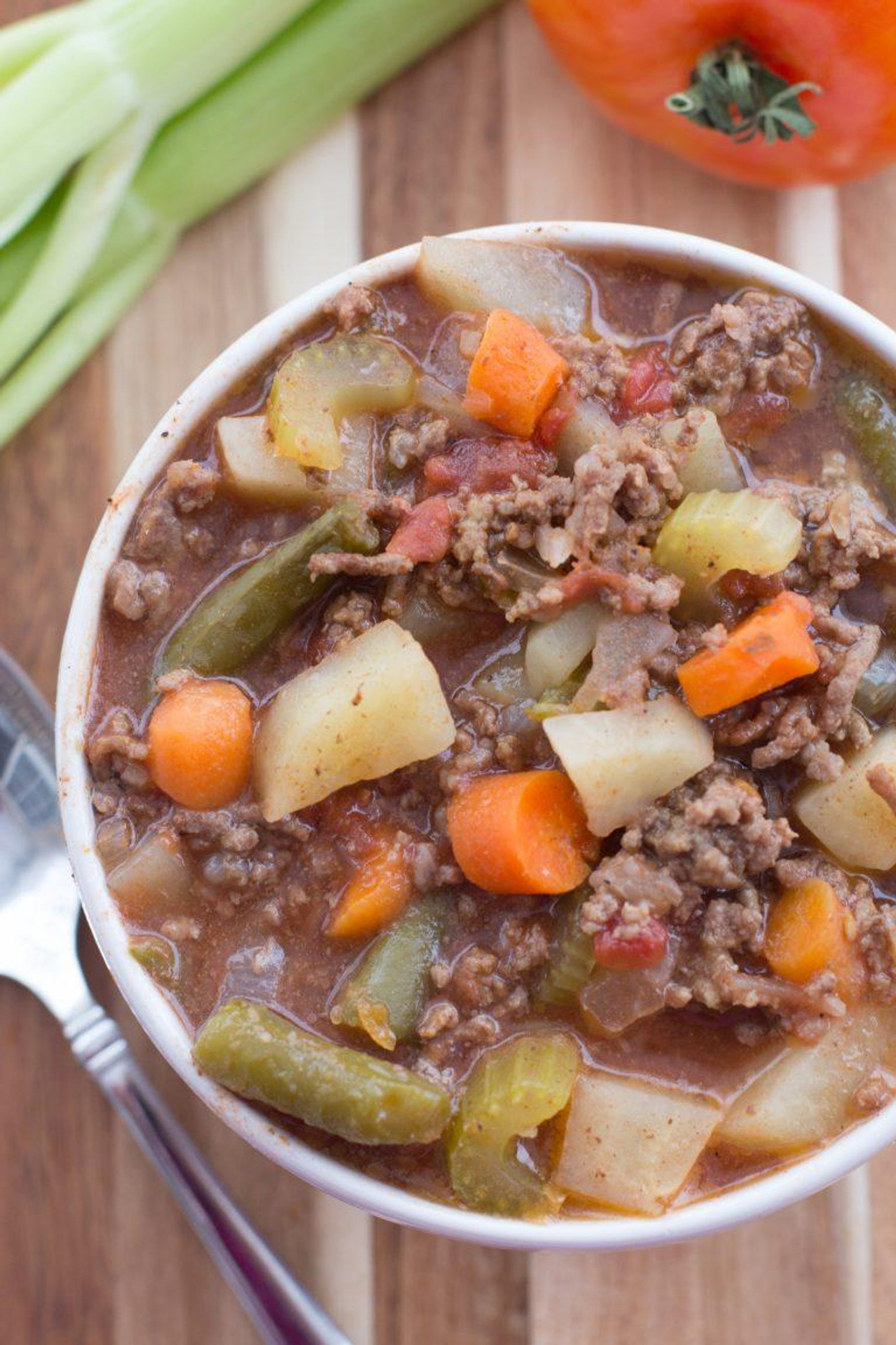 This Slow Cooker Hamburger Soup is easy to throw together in the morning so you can have a warm bowl for dinner. Easy and delicious!