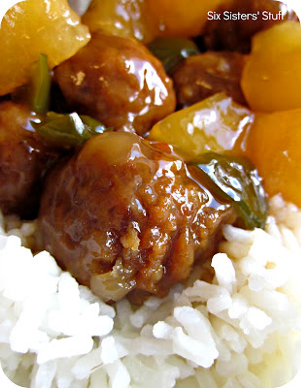 Place meatballs in crock pot and top with green pepper and drained pineapple chunks. In a separate bowl, mix reserved pineapple juice, brown sugar, cornstarch, vinegar and soy sauce. Pour sauce over...