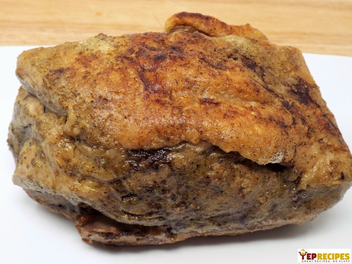 A simple and succulent pork shoulder roast with thyme and rosemary.