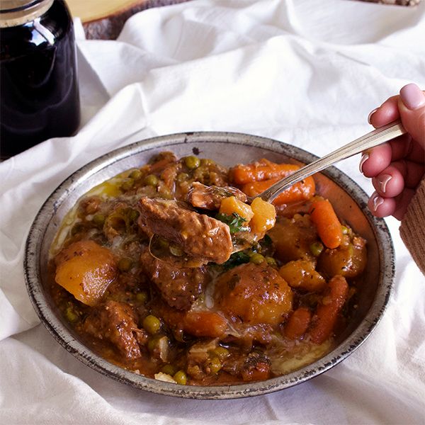 Deliciously warm and comforting with tender chunks of beef, carrots, and potatoes swimming Guinness flavored broth.
