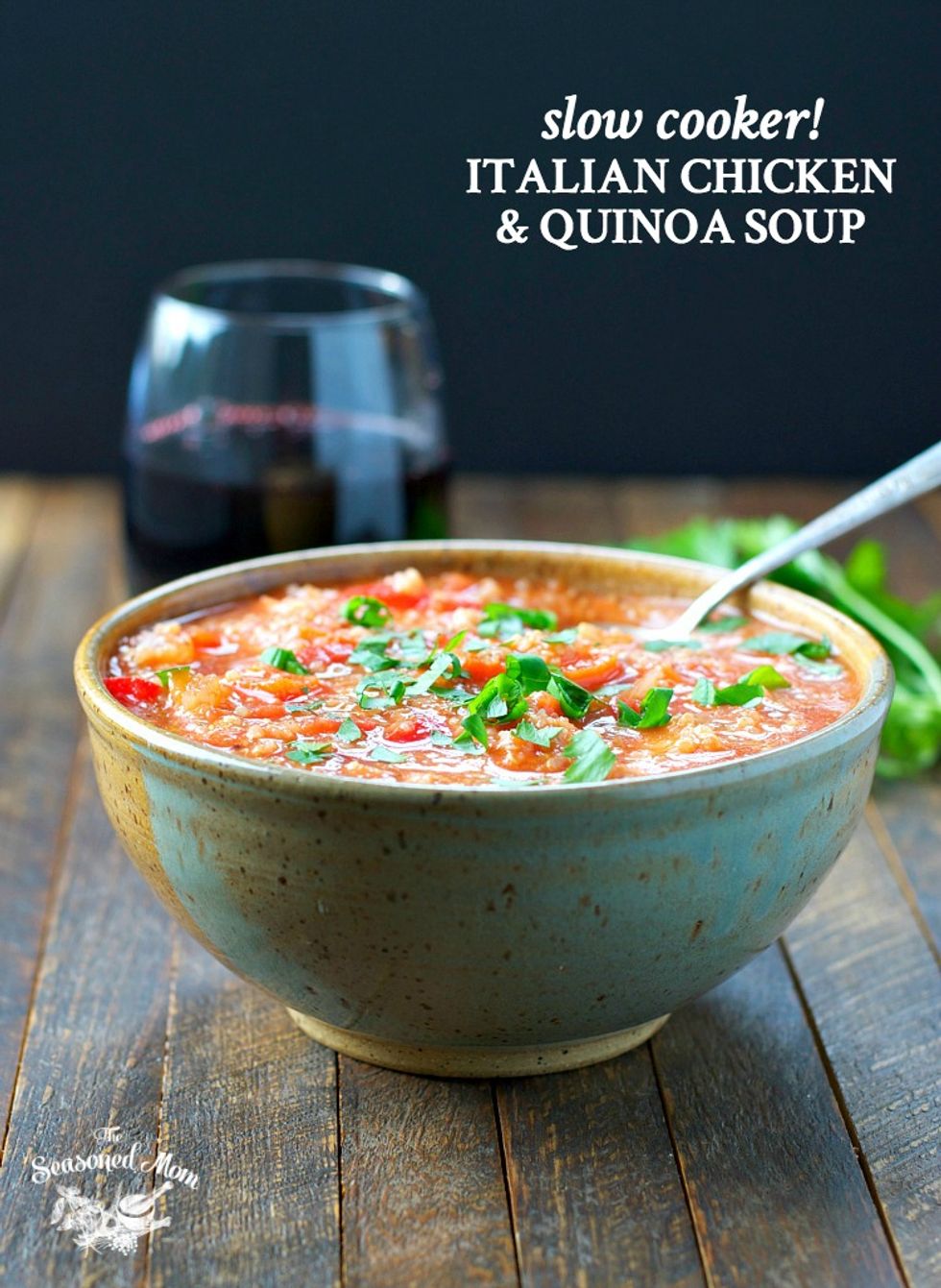 Just 5 minutes of prep for this easy Slow Cooker Italian Chicken and Quinoa Soup -- a healthy dinner that the whole family will love!