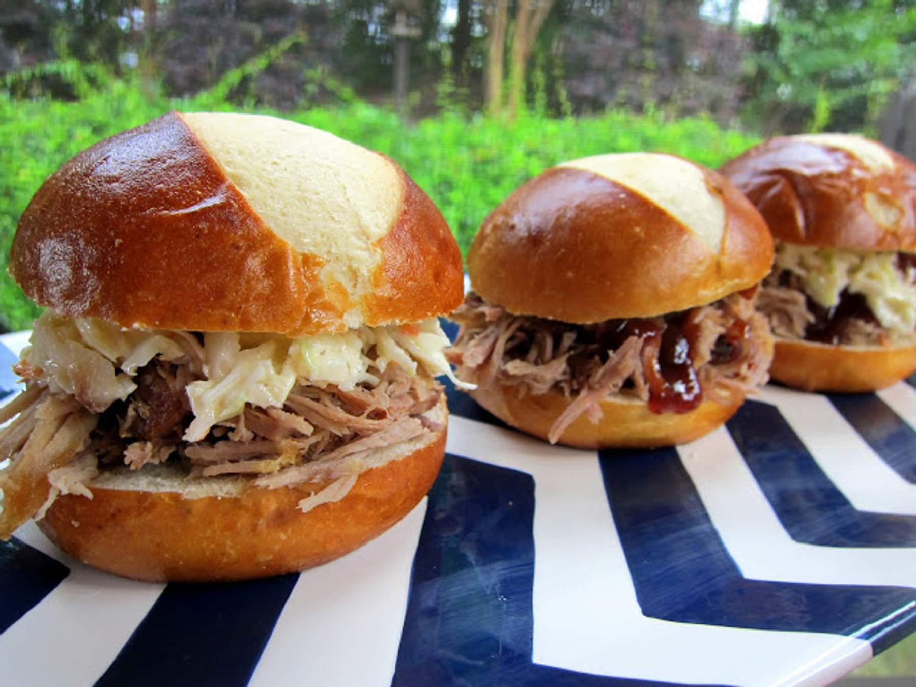 We had the leftover pork on the pretzel rolls BBQ sauce and coleslaw.