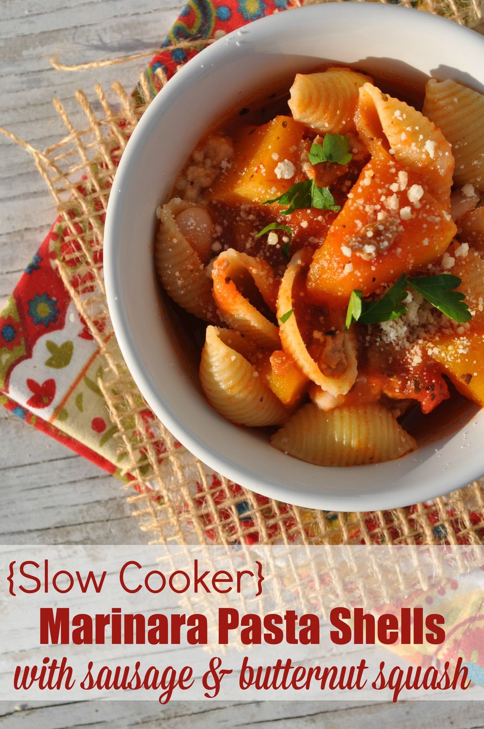 Slow Cooker Marinara Pasta Shells with Sausage and Butternut Squash