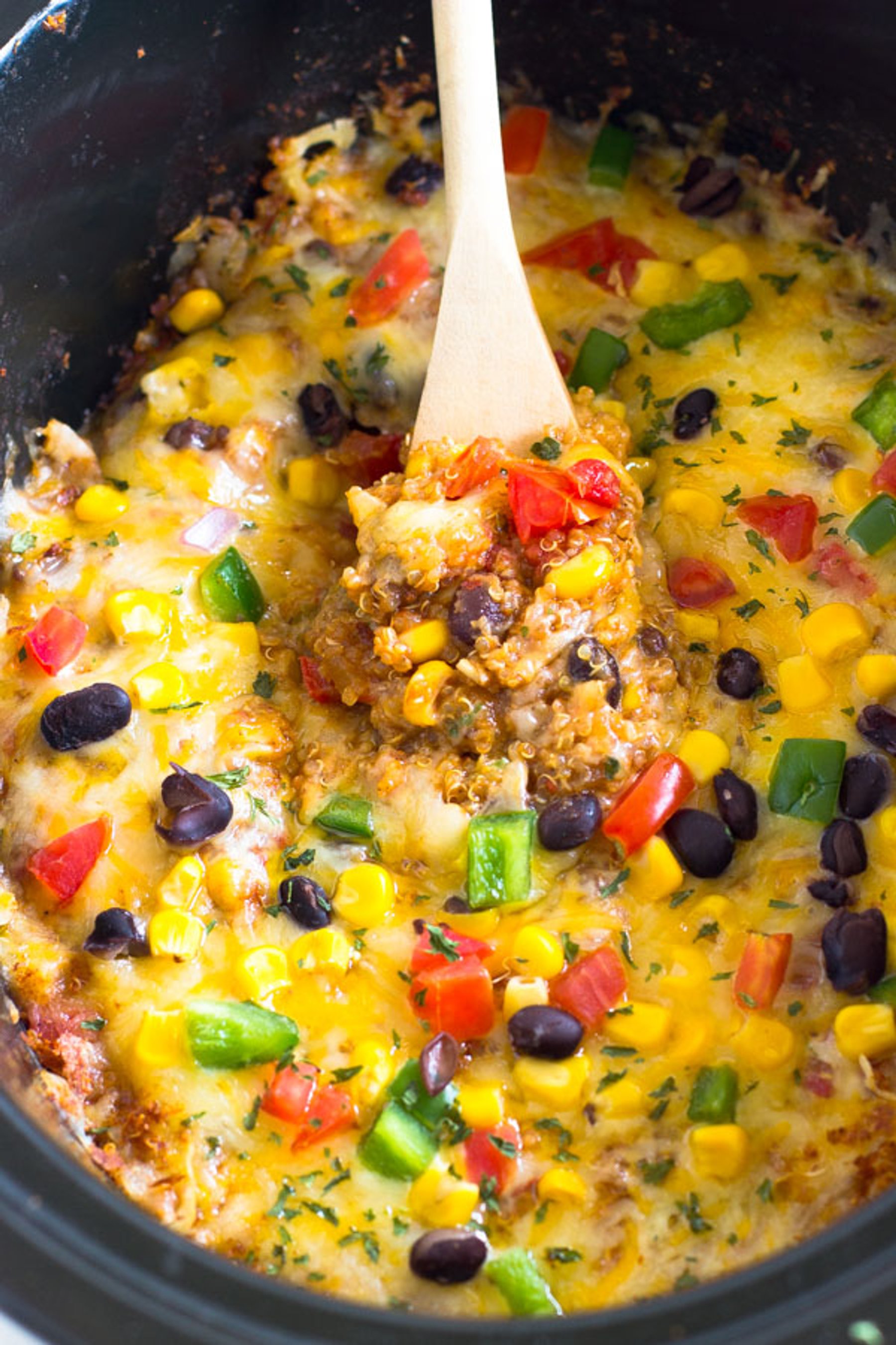 This Slow Cooker Mexican Quinoa Bake takes only 10 minutes of prep work and is made with quinoa and all your favorite Mexican ingredients for a thick, filling and delicious slow cooker weeknight meal!