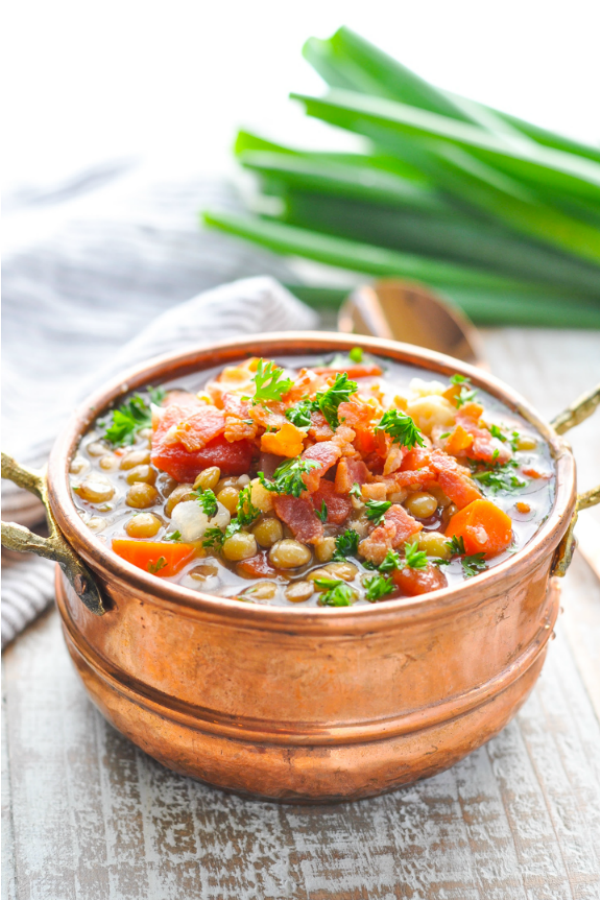 A healthy and easy dinner that warms and satisfies your body! This Lentil Soup recipe can be prepared in the slow cooker, in the Instant Pot, or on the stovetop for a simple make-ahead meal that reheats beautifully throughout the week.