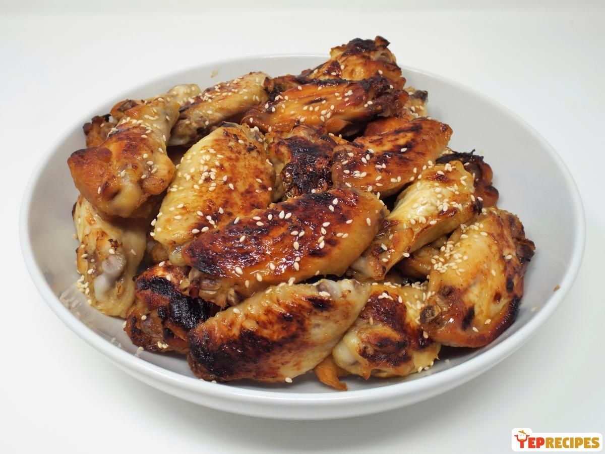 Chicken wings slow cooked in an Asian-style orange honey sauce, broiled until crisp then sprinkled with toasted sesame seeds.
