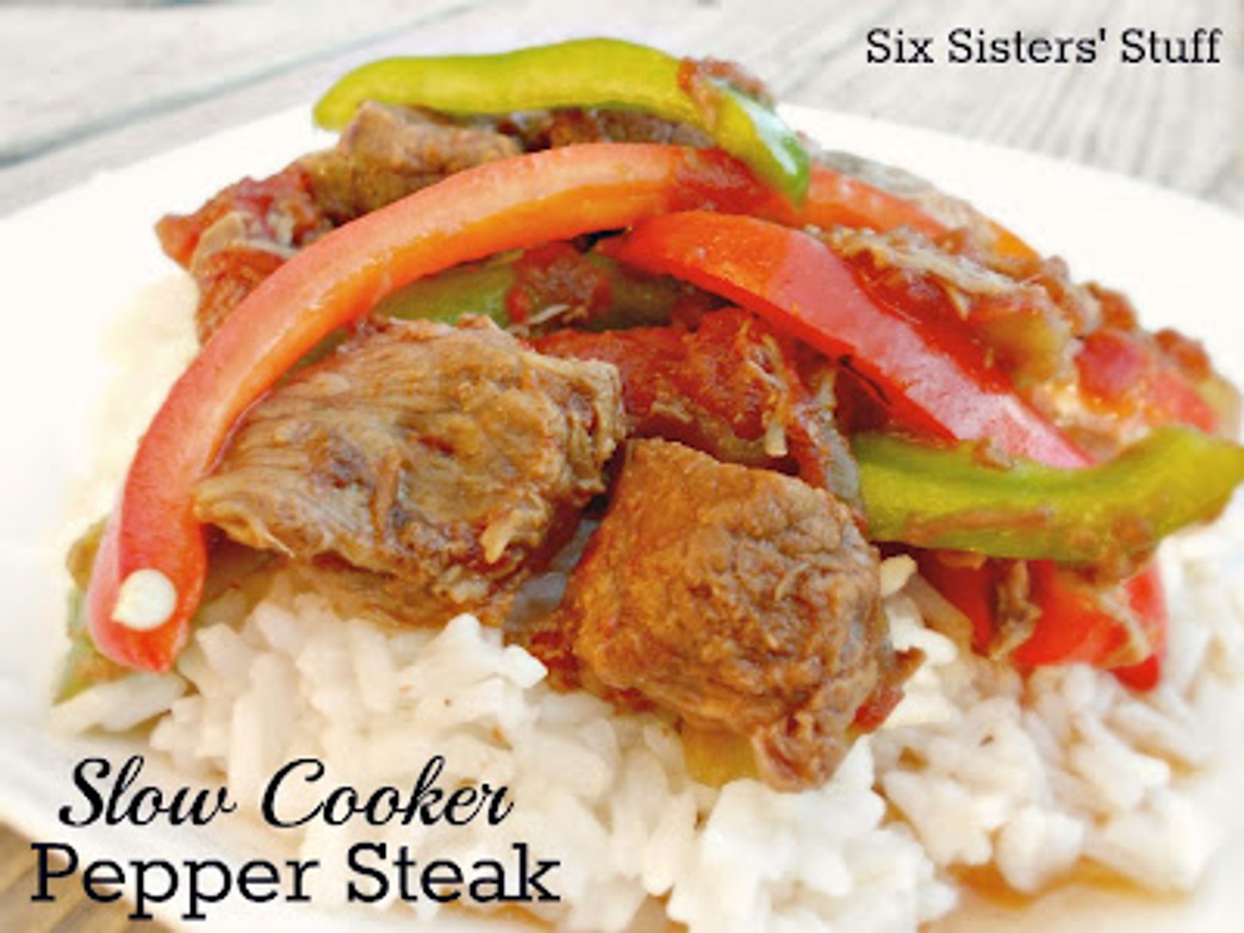 For the last 30 minutes of cooking, add the sliced peppers and turn heat up to high (if it wasn't on high already). If you add the peppers any sooner, they become pretty mushy. I also added a tablespoon of cornstarch (mixed with 1 Tablespoon cool water) just before serving to the drippings left in the slow cooker, which made a yummy gravy that was perfect over rice.