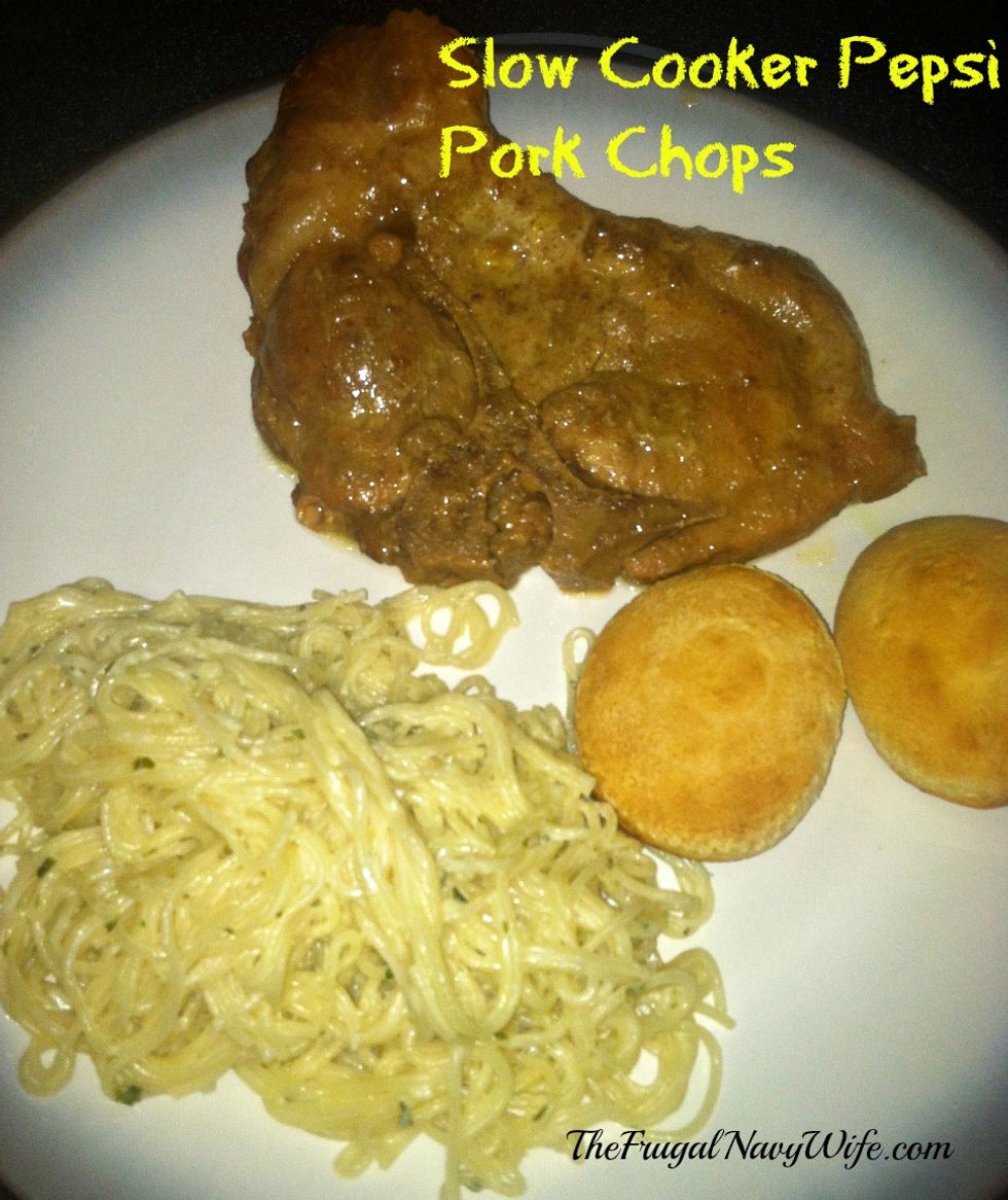Mix the soups and onion soup mix and pour over pork chops. Add in Pepsi and chicken broth.