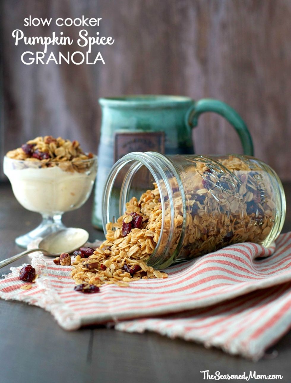 This Slow Cooker Pumpkin Spice Granola Recipe is an easy make-ahead breakfast or snack to pair with a cozy mug of coffee this season!