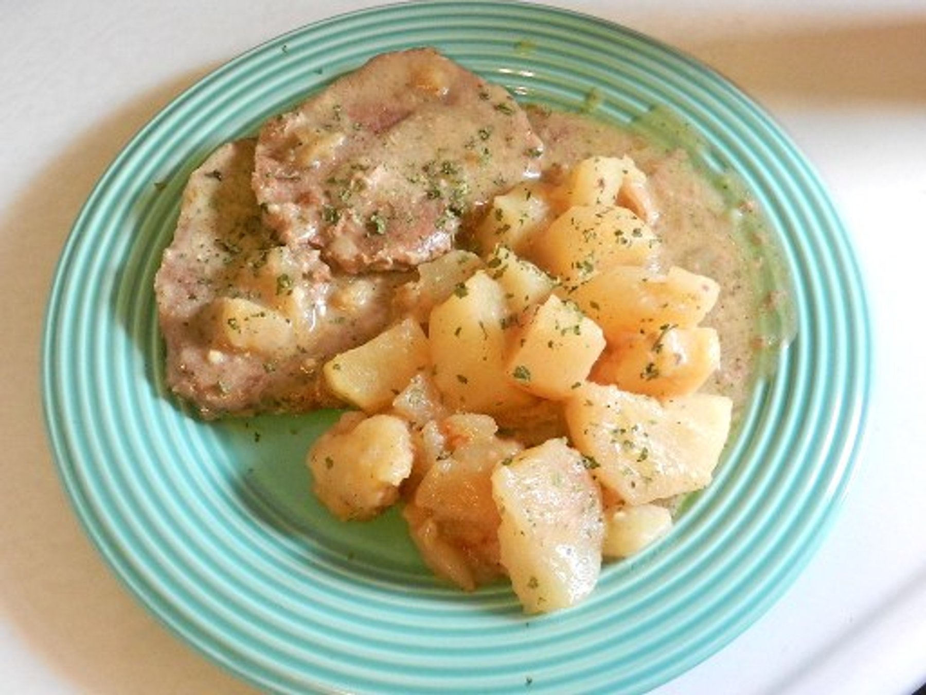 Layer your onion slices and potatoes into a sprayed slow cooker and then pour about an 1/8th of the sauce over...