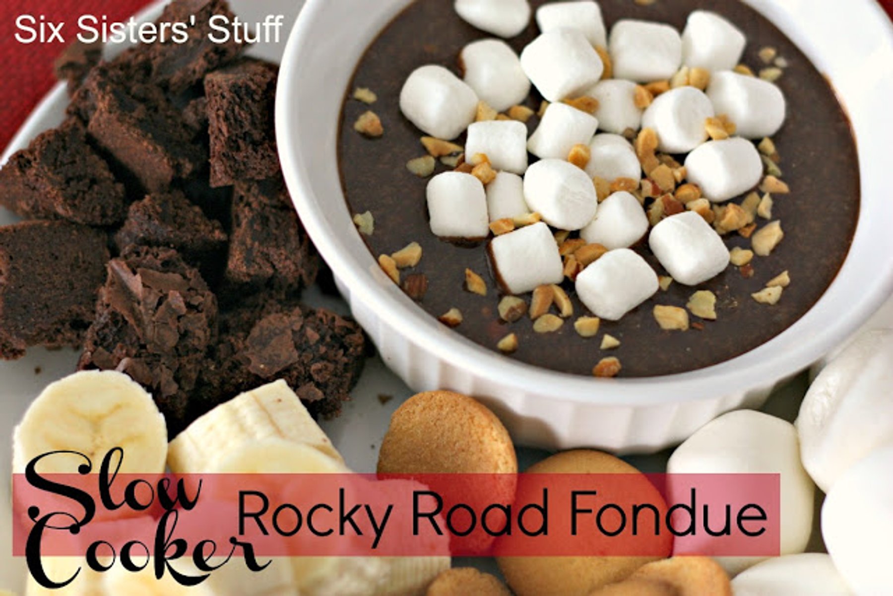 We use our slow cookers for a lot of dinners . . . but did you ever think to use it for dessert?! Now that the weather has turned cold, we have a lot of family movie nights and no movie night is complete without a delicious treat! My kids loved finding new things to dip into this warm chocolate and it was so fun to munch on while we watched our show. This would also be the perfect dessert for a romantic date night