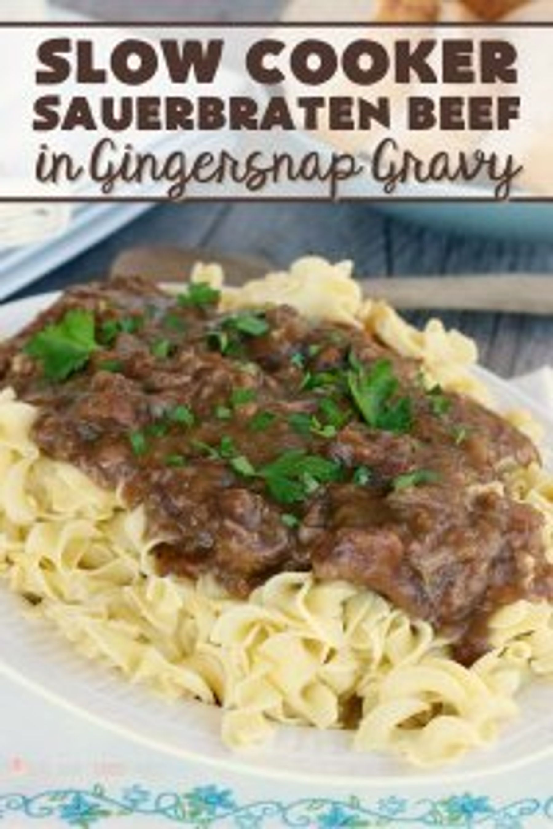 You don't have to wait for days to enjoy this Slow Cooker Sauerbraten Beef in Gingersnap Gravy. This mouth-watering old-world dish is tender and absolutely delicious served over spaetzle or noodles!