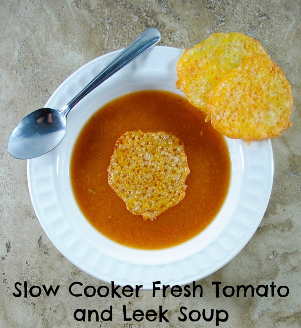 Slow Cooker Savory Leek And Tomato Soup With Cheese Crackers