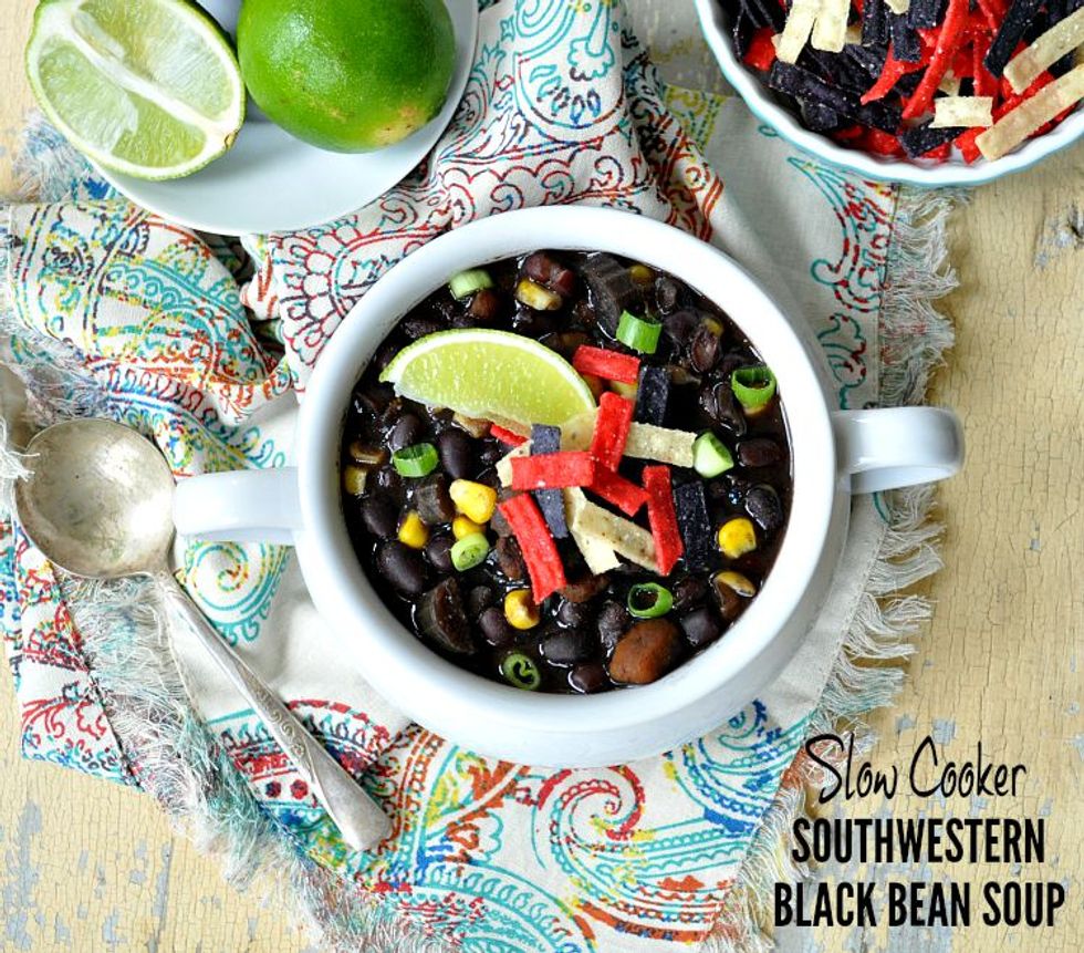 This Slow Cooker Southwestern Black Bean Soup is a hearty and filling comfort food dish that will please even the most die-hard meat-lovers! It’s an ideal football party food, a great tailgating option, as well as an easy dairy-free and vegetarian weeknight dinner!