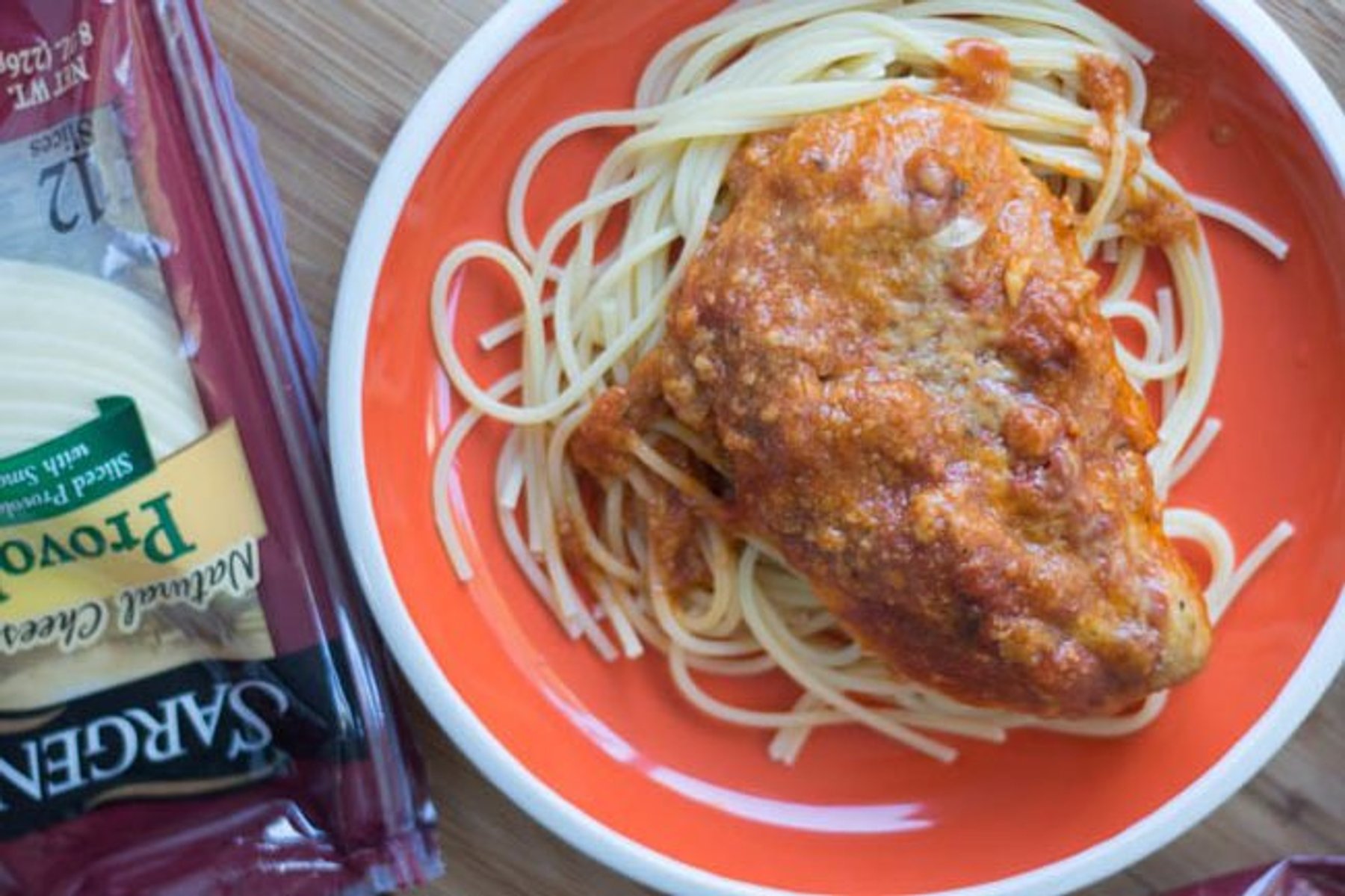 Cover the bottom of the slow cooker with about 2/3 of the pasta sauce. Pour about 2/3 of the spaghetti sauce on the bottom of a slow cooker. Cover chicken breasts with milk. Shake off excess. Cover the...