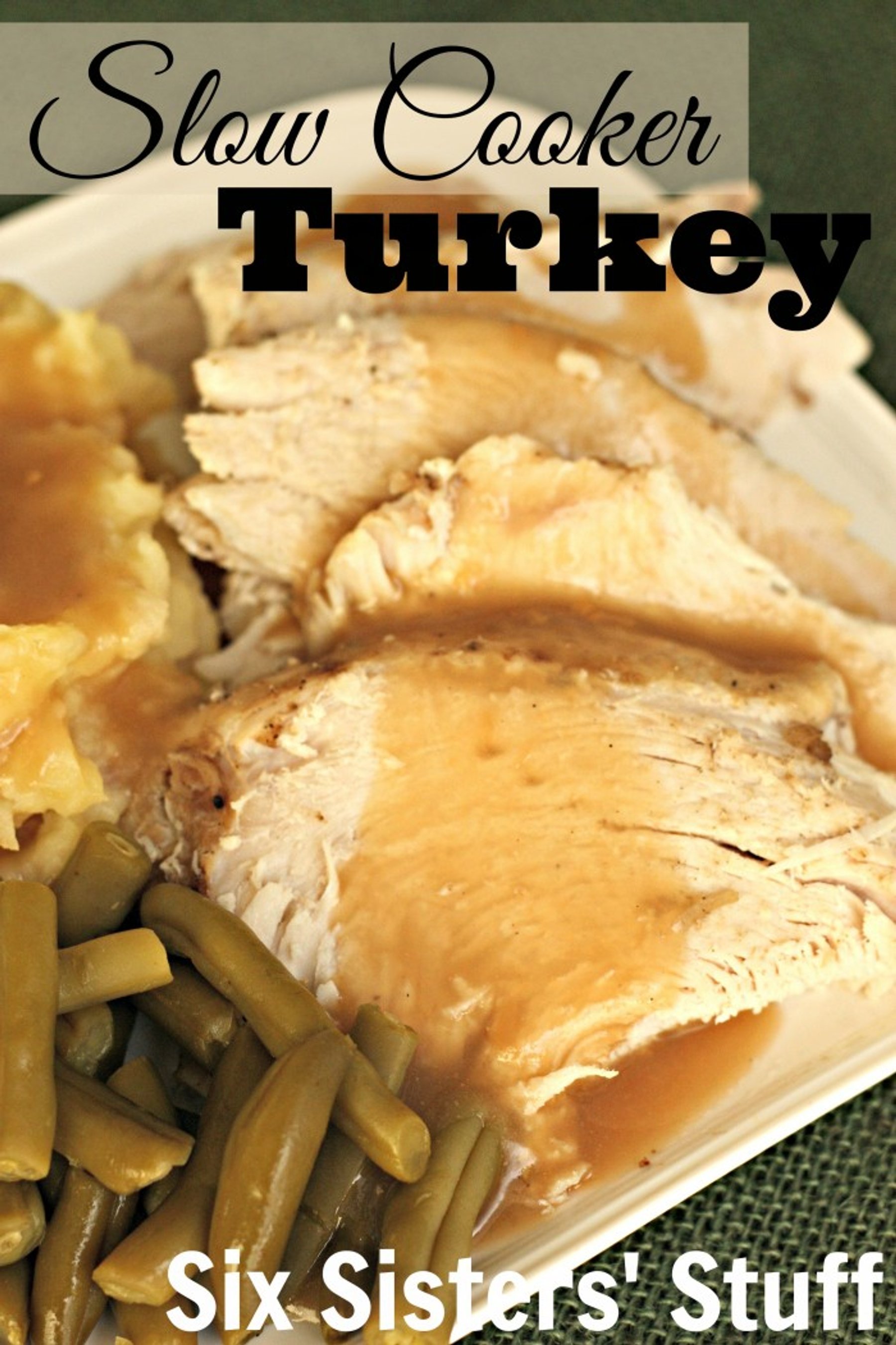 Anyway, whenever I make turkey dinner for my family, I always just make it in my slow cooker. It turns out moist and juicy every time . . . you can't go wrong with this recipe! Of course, you can't fit a huge ol' bird in a 6-quart slow cooker, so keep that in mind. :) I ended up purchasing an 8 lb turkey breast which fit perfectly in my slow cooker. Plus, you don't have to deal with all the turkey guts when you buy a turkey breast of that size. Happy turkey dinner!
