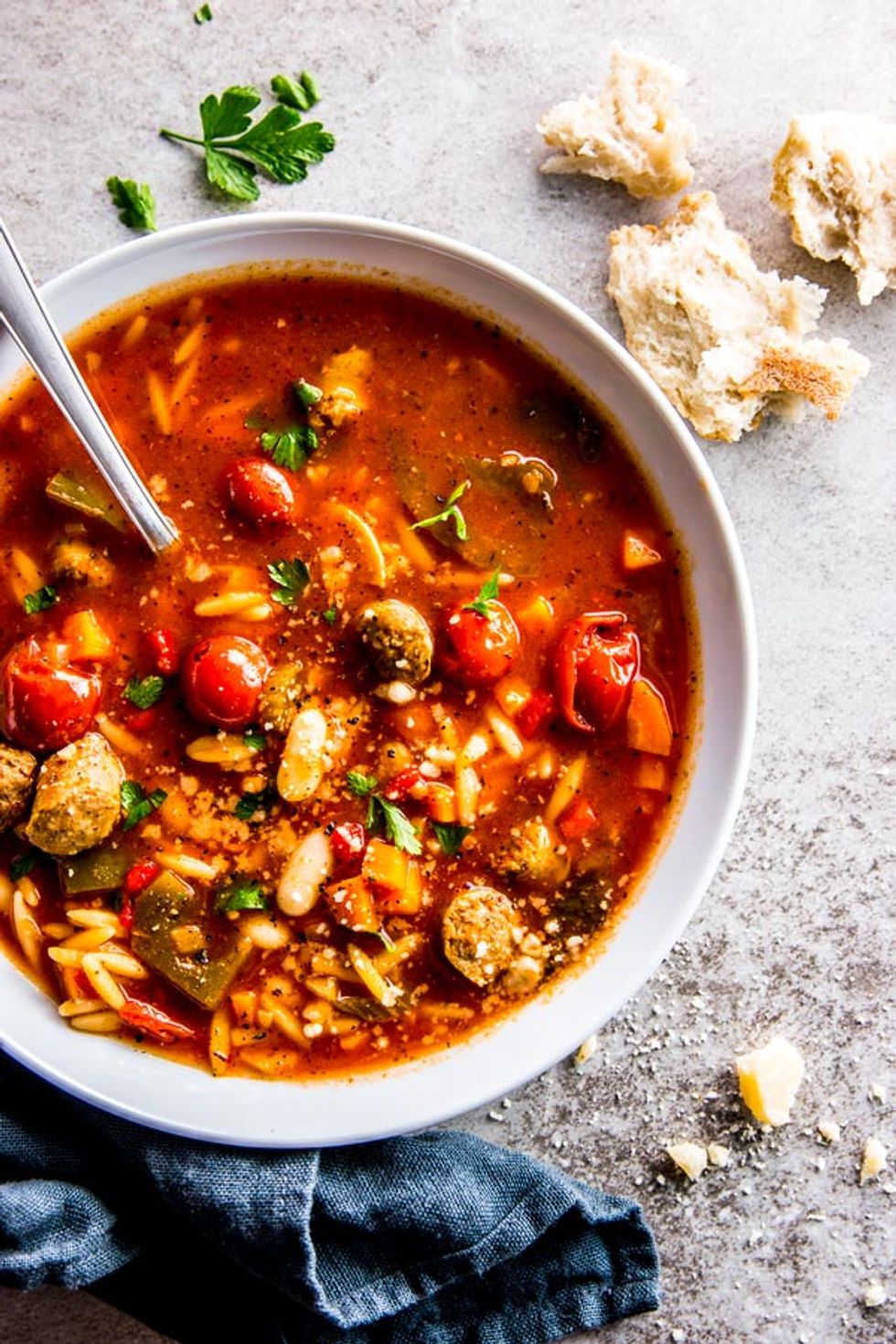 Make your family feel warm and cozy around the dining table tonight: Serve this Sausage Tuscan White Bean Soup – made in the crock pot for easy meal prep!