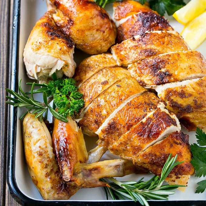 This slow cooker whole chicken is a rotisserie style seasoned chicken made with the help of the crock pot. It's a super easy dinner option and the leftover chicken can be used in countless other dishes!