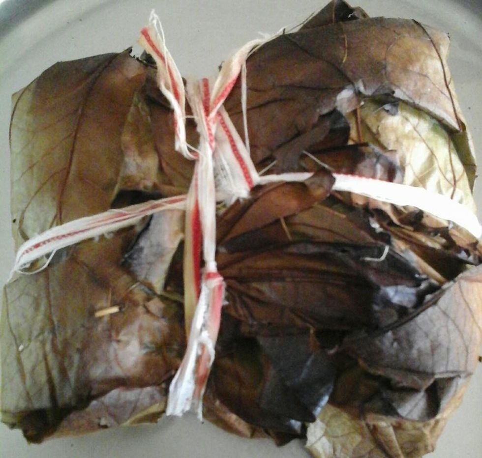 SMALL FISH PATRA PODA( Small fish wrap on lotus leaf and baked)