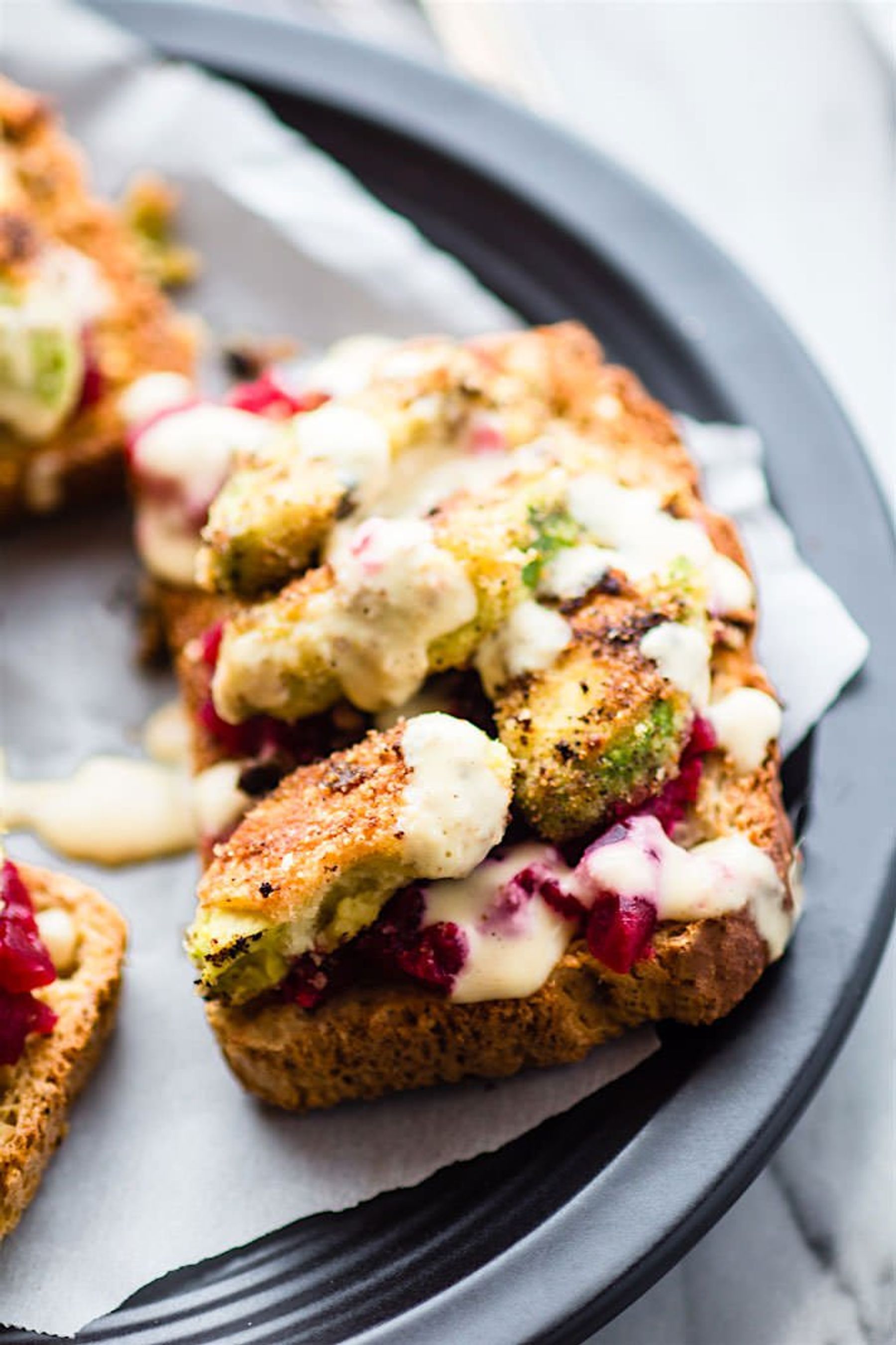 Smashed Beet Crumbed Fried Avocado Toast With Onion Aioli {Gluten Free}