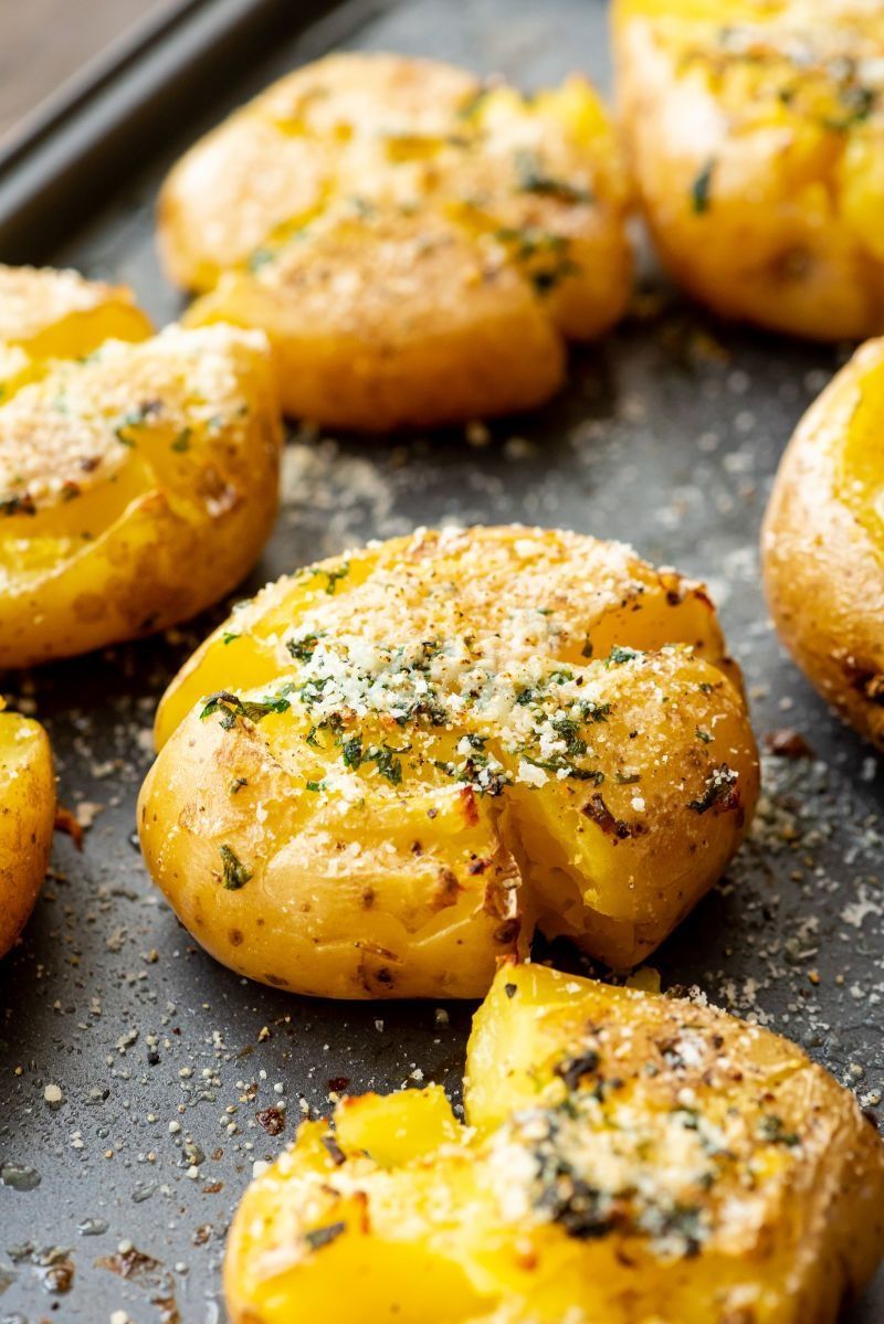 Smashed Potatoes are a quick and easy side dish for the weeknight to get you out of your rut! Think a delicious potato with garlic, butter, and Parmesan cheese. I mean, if you don't want to make them now, I don't know why not! Crispy potatoes that are brushed with a garlic butter mixture and then seasoned with salt and pepper. After that bake them in the oven and then top with Parmesan cheese! Sound delicious, doesn't it?