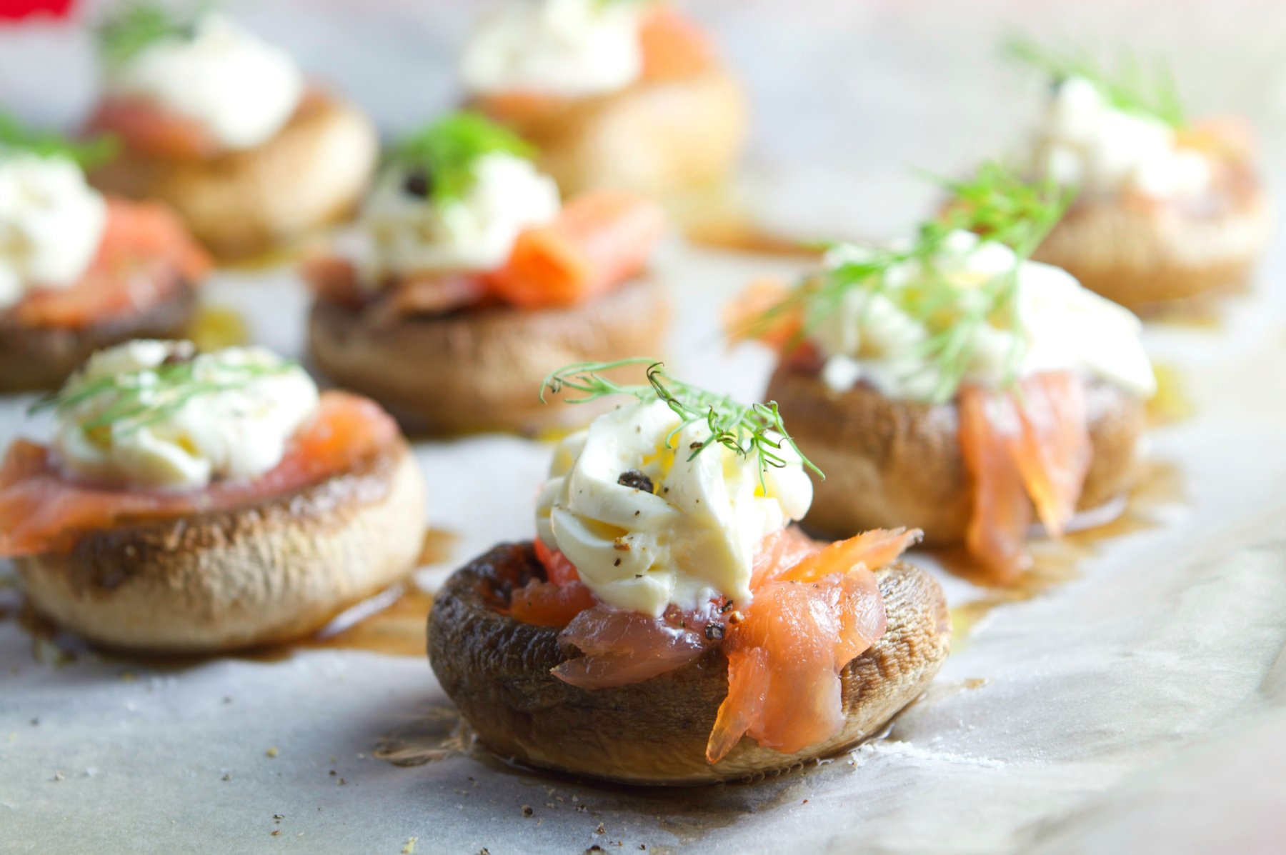 Smoke Salmon & Cream Cheese Mushroom Canapes