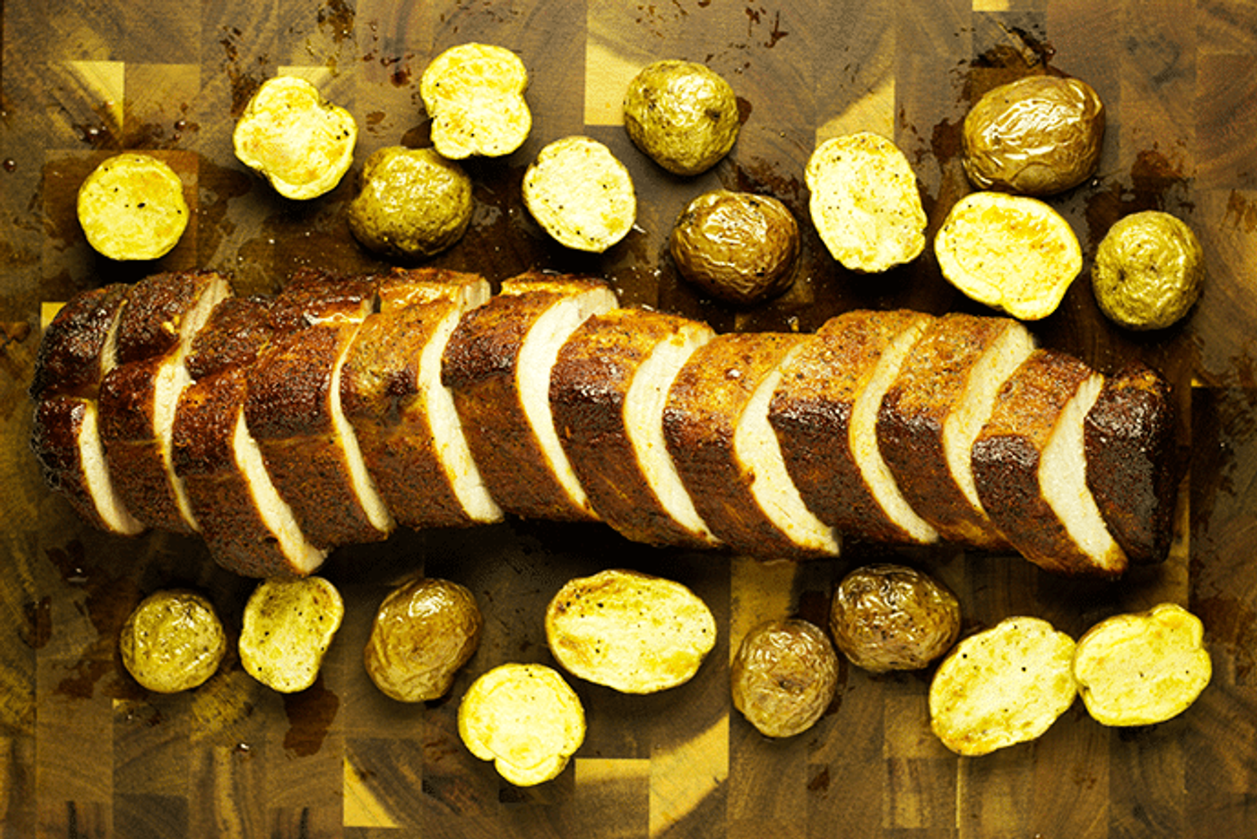 Generously season your pork tenderloin, covering all its surfaces with the...