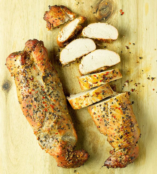 2. Coat tenderloin with olive oil. Add all spices and coat tenderloin generously.