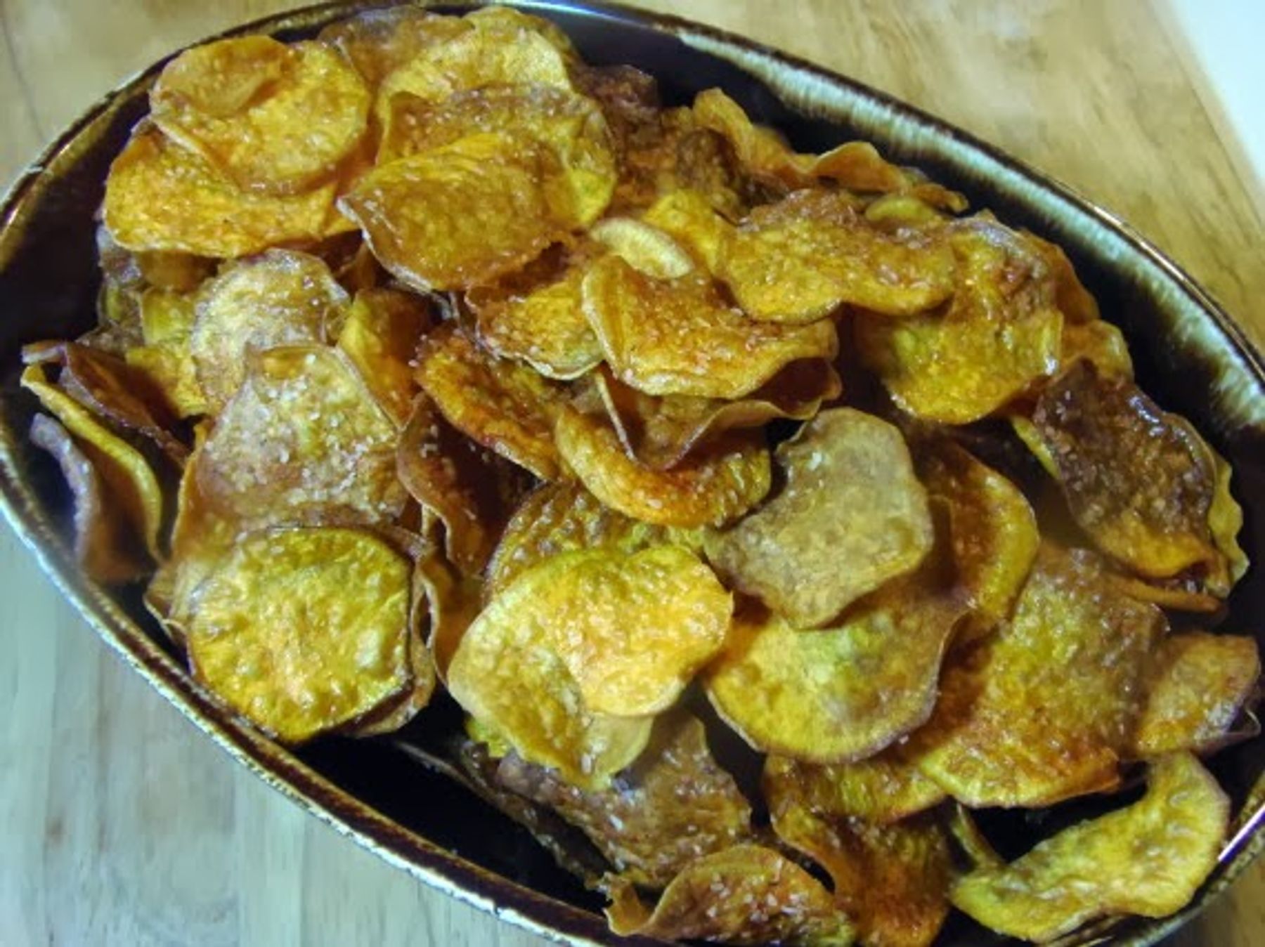 I hate to be rude but, Crunch. Crunch. Crunch. I'm excited to tell you Crunch. Crunch. Crunch. that for this week's #SundaySupper theme of crunchy foods, Crunch. Crunch. Crunch. I got to make something I've been wanting to make for a long, long time... Potato Chips!!! Not any old potato chips, mind you. Smoky Sweet Potato Chips that I just could NOT stop munching and crunching on! Crunch. Crunch. Crunch. See what I mean? LOL So satisfying! So delicious! So LOUD!!