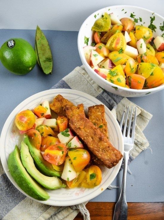 https://yupitsvegan.com/smoky-tempeh-with-fresh-peach-and-cherry-tomato-salsa/