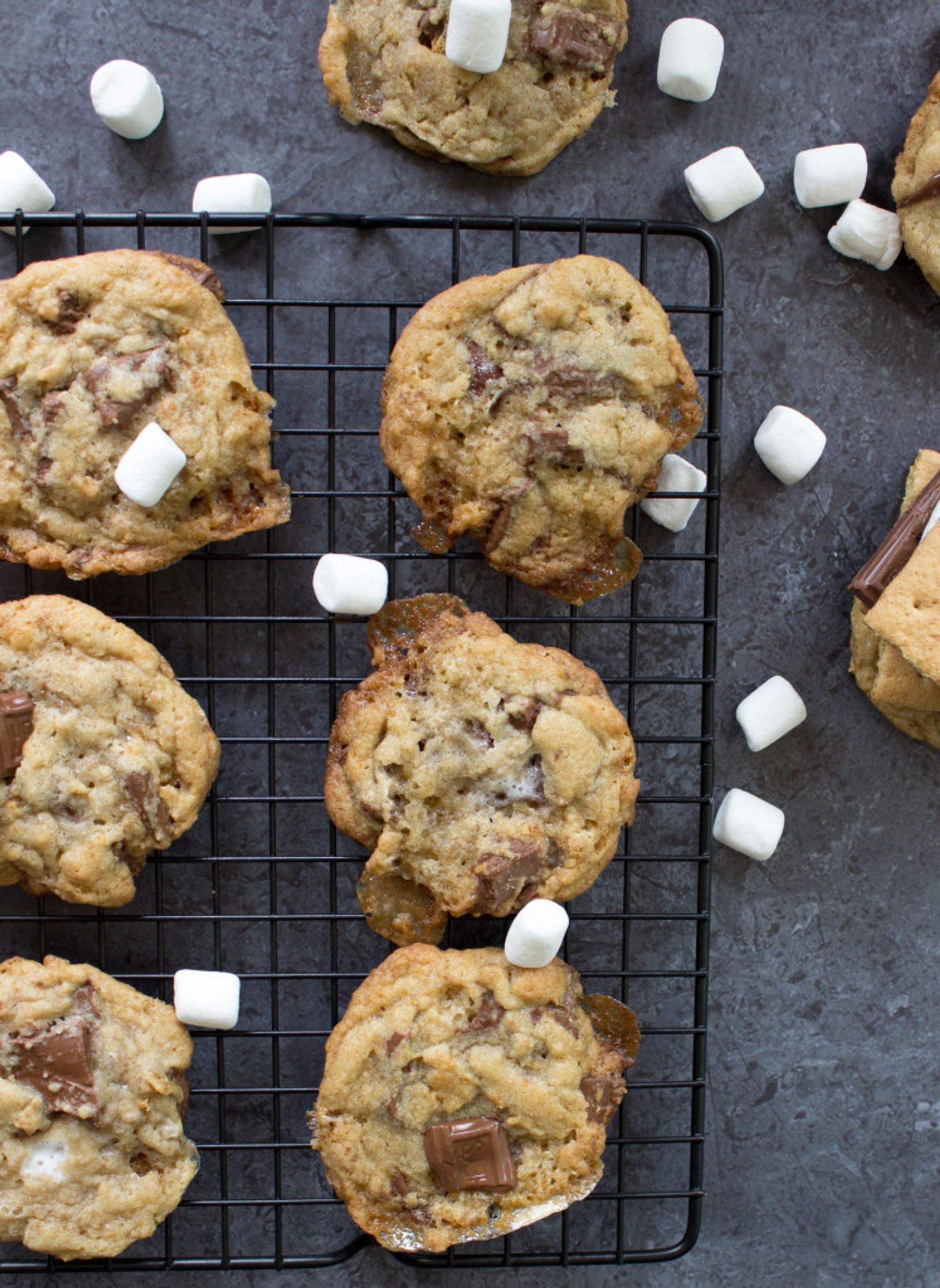 Slightly crisped, perfectly marshmallow-y, gooey and exceedingly chocolatey cookies made with a graham cracker base, these S’mores Cookies are the perfect way to get your s’mores fix without a campfire.