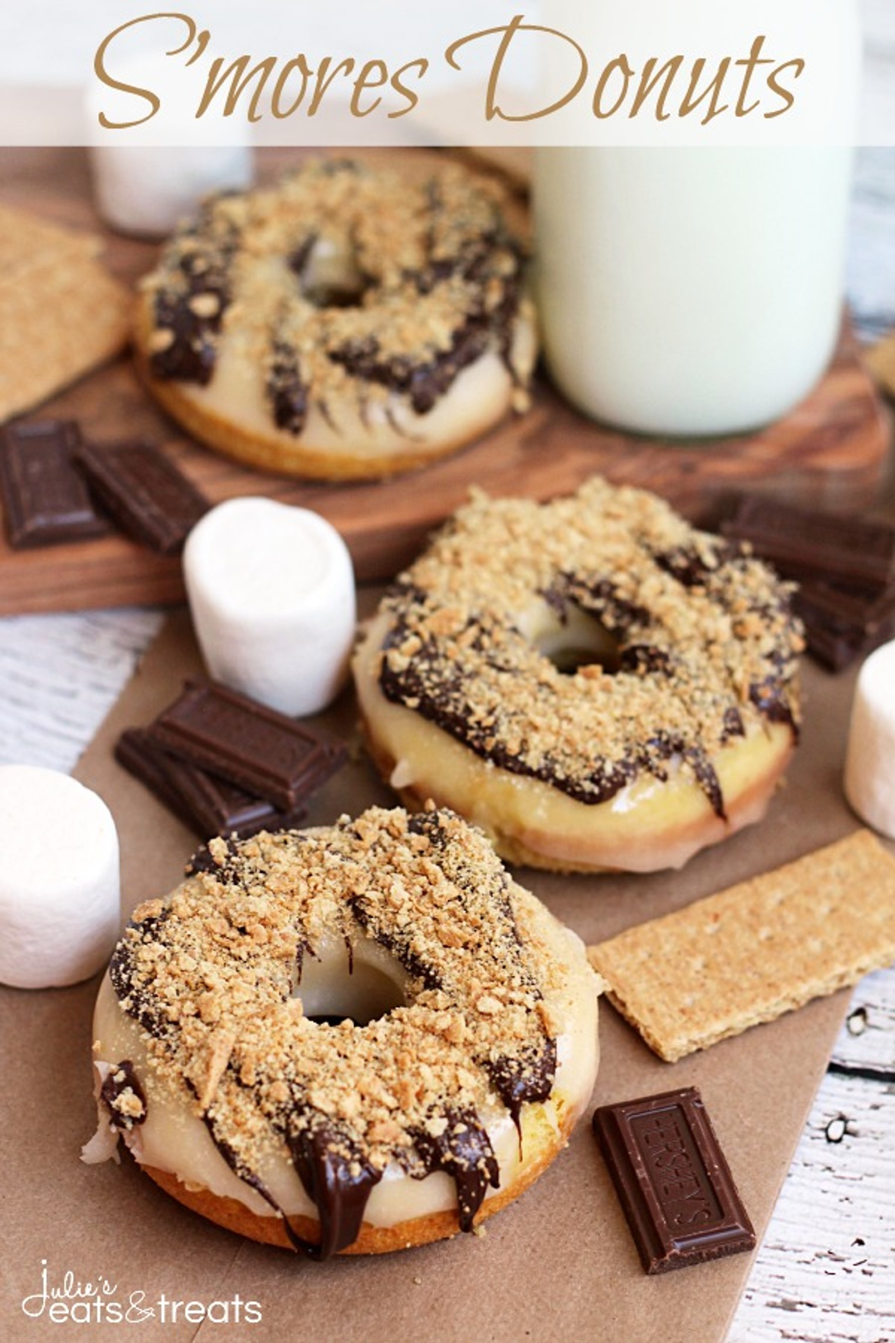 S’mores Donuts ~ Homemade Donuts Loaded with Marshmallow Frosting then Drizzled with Chocolate and Topped with Crushed Graham Crackers!