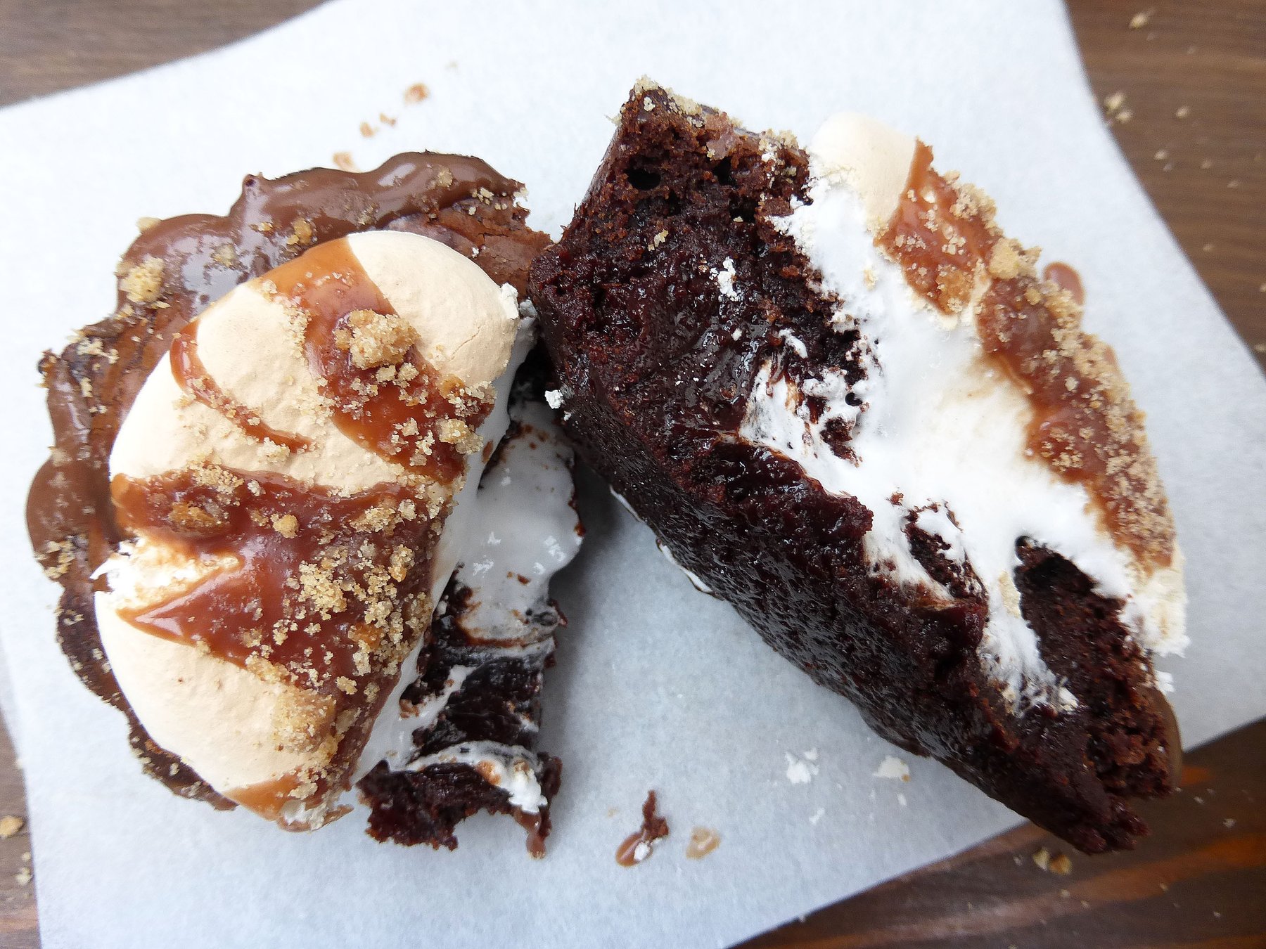 The most decadent, gooey cupcakes ever, topped with marshmallow frosting/crème and sprinkled with homemade Graham crackers