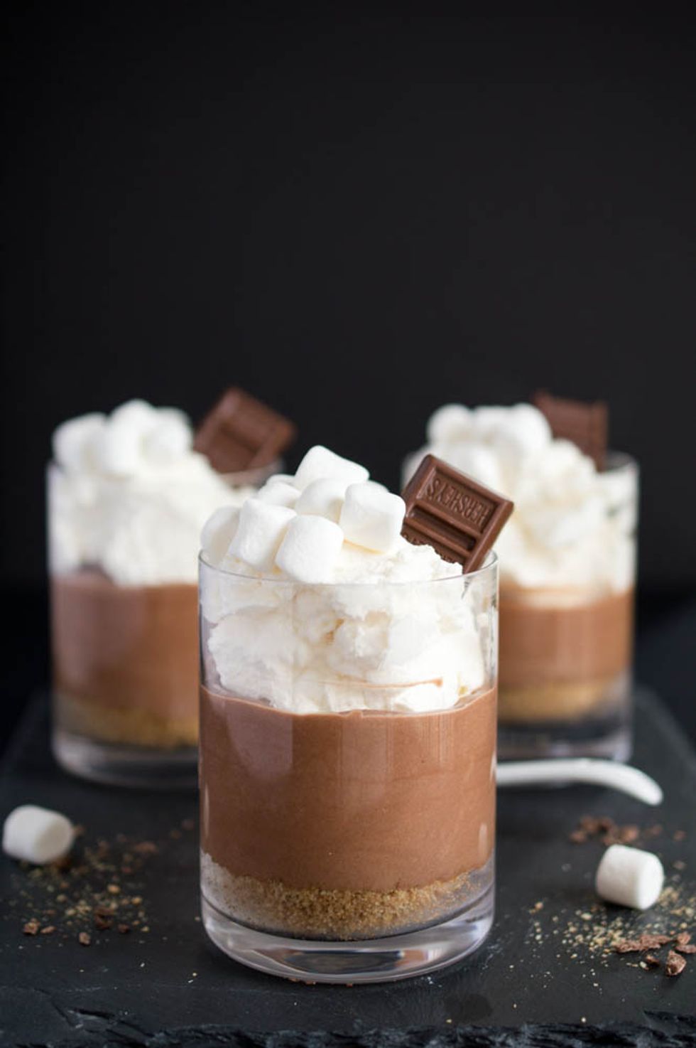 S’mores mousse layered with graham cracker crust, chocolate mousse and marshmallow whipped cream. A decadent and easy single serve dessert.
