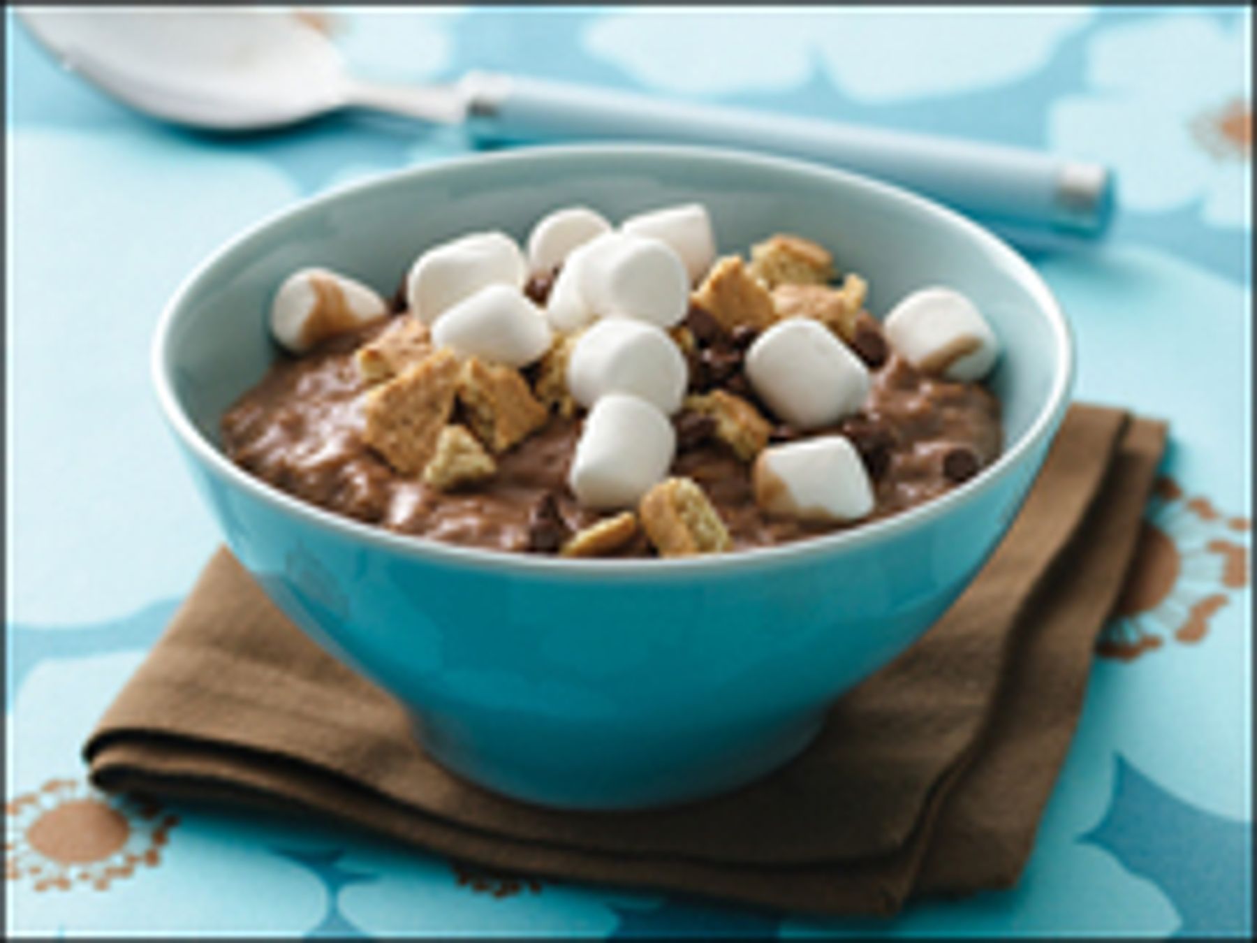 Transfer to bowl and top with marshmallows, crushed graham cracker, and remaining 1 teaspoon chocolate chips. Enjoy!