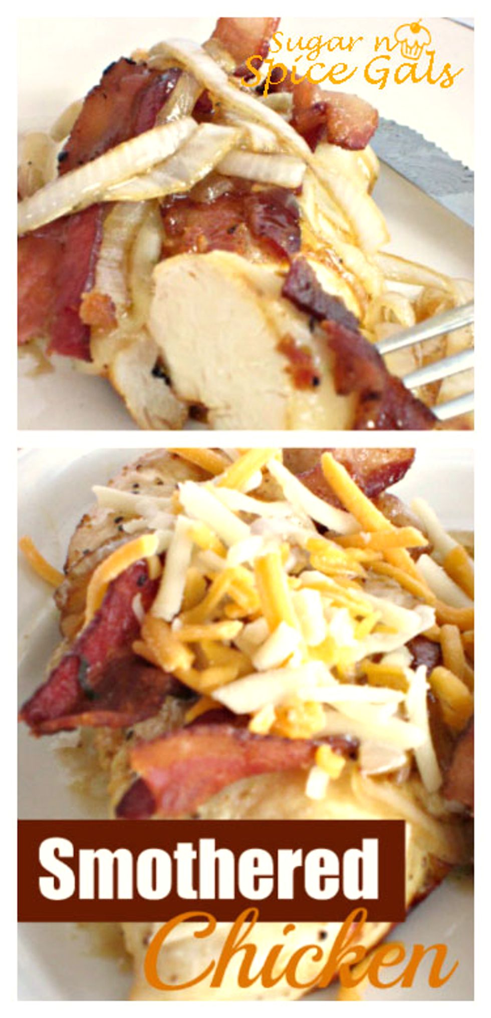 Whenever I go out to restaurants, one of my favorite thing to order is smothered chicken. There are different versions out there, but usually what I found I love is if it has bacon, camelized onions and cheese! So this recipe was a winner since I basically just threw together the things I love on to my chicken. The secret for me on this chicken was adding the brown sugar to the onions. Mmmm, so good!! I love that I can now make my own version of smothered chicken at home! -Robin