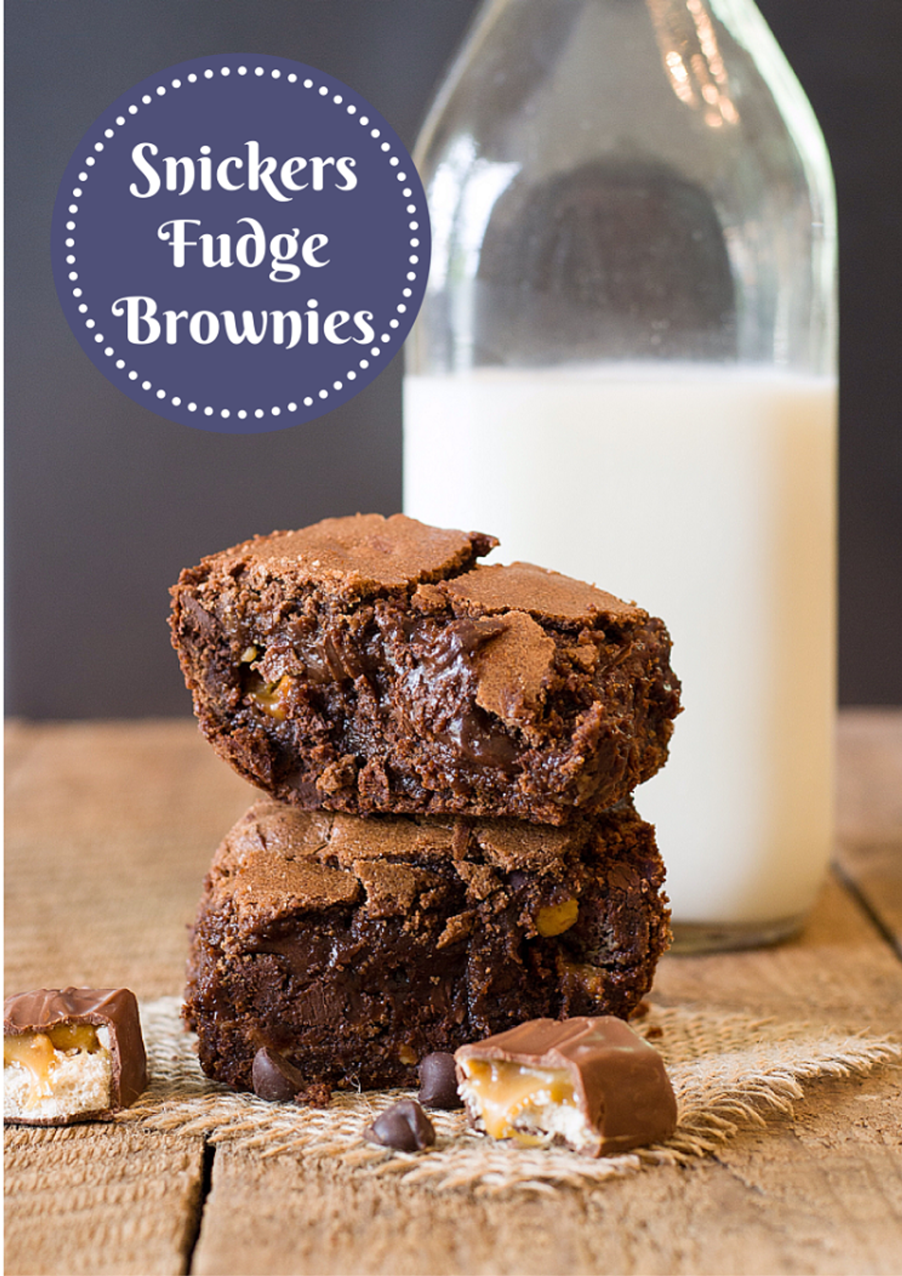 Snickers candy bars and chocolate chips make these brownies ooey, gooey delicious!