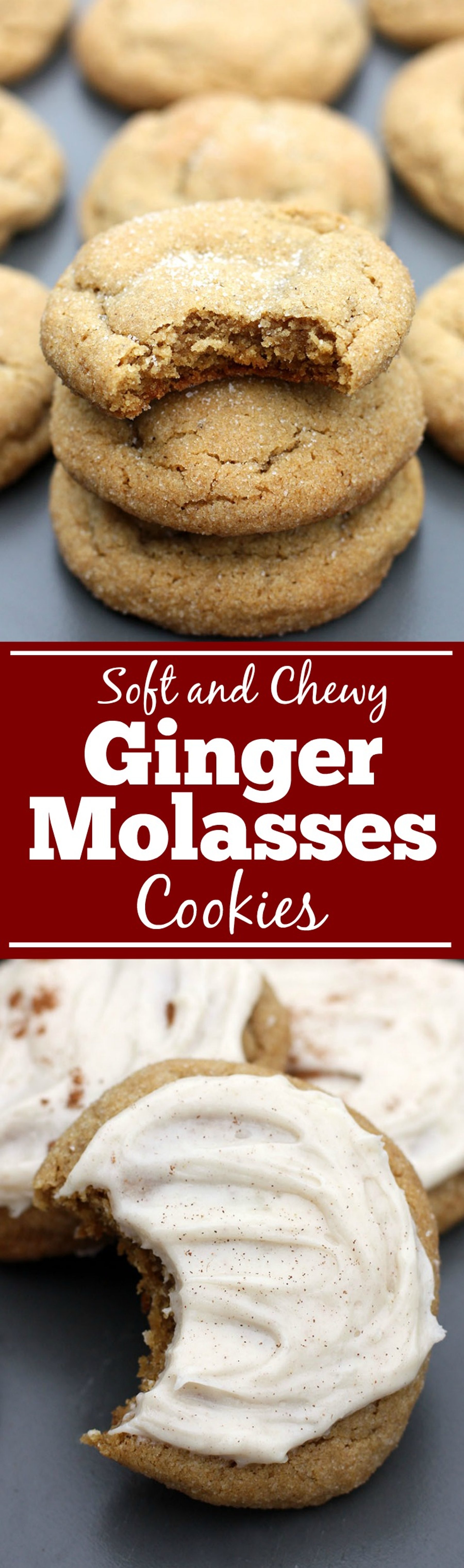 Soft and Chewy Ginger Molasses Cookies with Cinnamon Cream Cheese Frosting