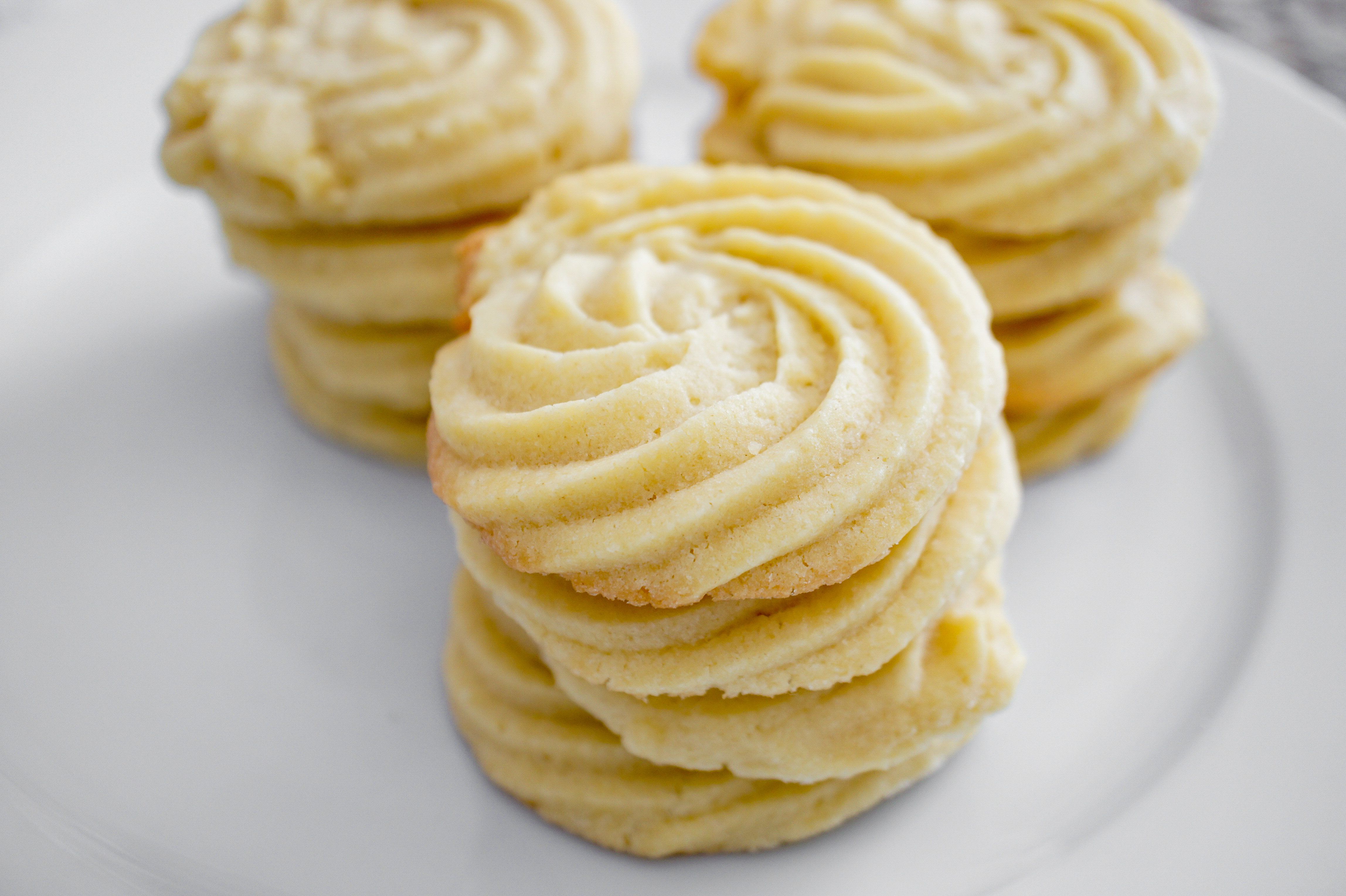 These Soft Butter Cookies are delicate, tender, packed with buttery goodness and are fabulous dipped in dark chocolate. The classic swirl design is impressive and so easy to make at home!