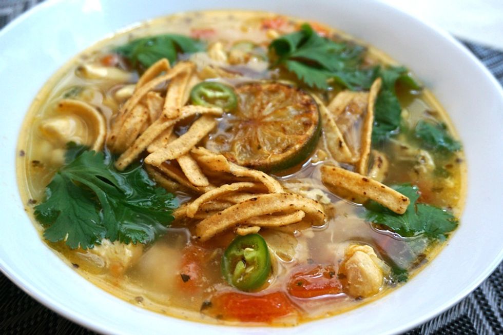 Traditional chicken and lime soup from Mexico\\\'s Yucatan Peninsula.