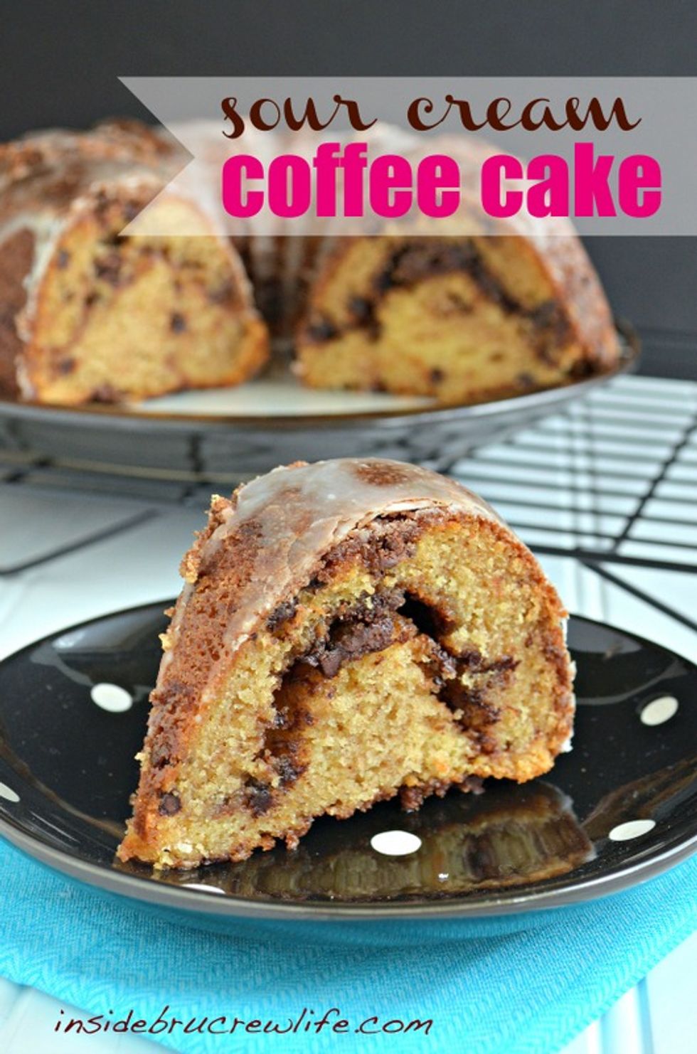 Cream the butter and sugar until light and fluffy. Beat in the sour cream, eggs, and vanilla. Sift together the flour, baking powder, baking soda, and salt. Slowly add to the butter mixture.