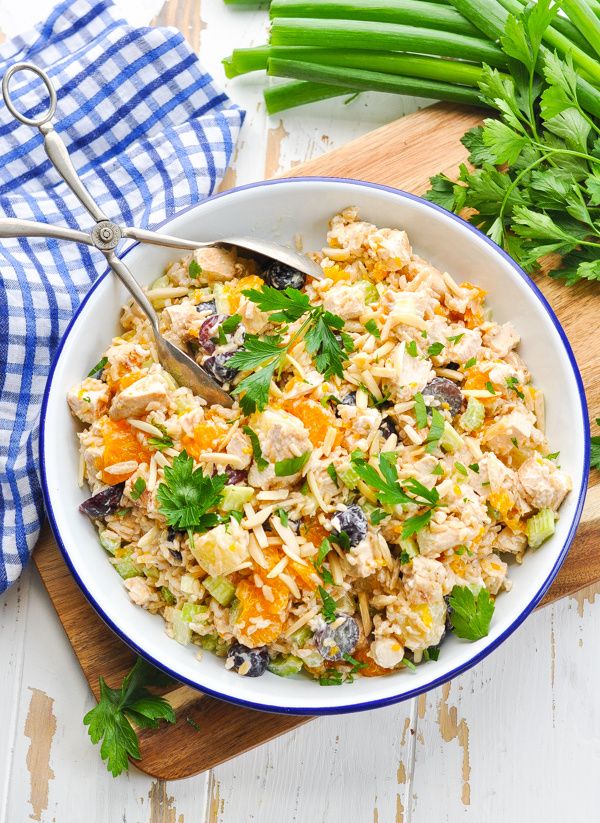 This light Southern Chicken and Rice Salad is a satisfying dish that's perfect for easy summer dinners or a fancier lunch with the ladies. The marinated chicken, sweet fruit, crunchy almonds, and hearty brown rice, offer a variety of flavors and textures for the ultimate crowd-pleasing dish!