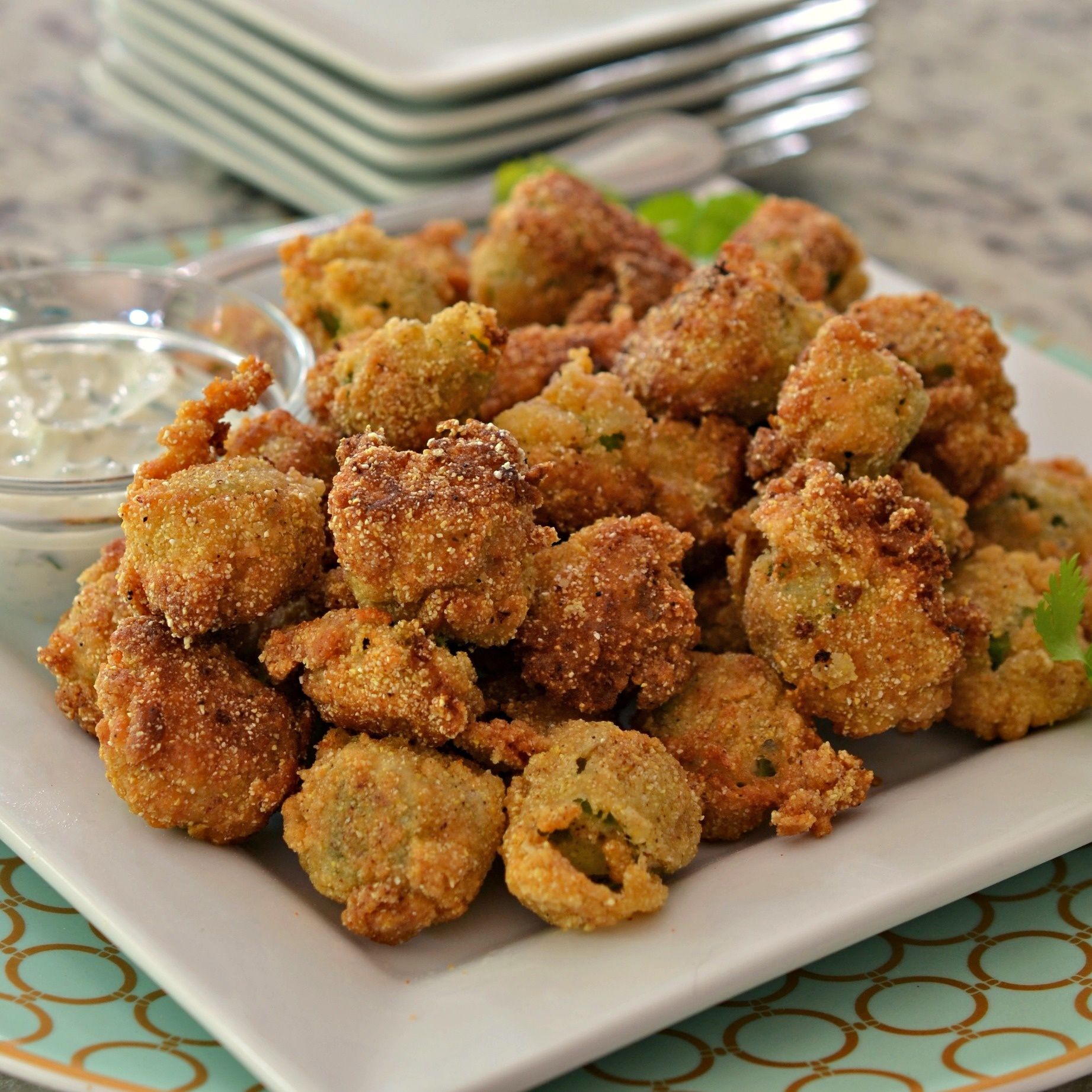 Southern Fried Okra with Jalapeno Yogurt Sauce
