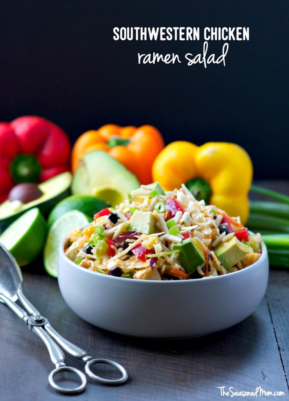 This light, healthy, and fresh Southwestern Chicken Ramen Salad is an easy side dish for cookouts or picnics, a simple make-ahead dinner, or an easy lunch to keep on hand. Loaded with veggies and dressed in a homemade Southwestern Lime Vinaigrette, it’s a flavorful dish that’s full of satisfying tastes and textures!