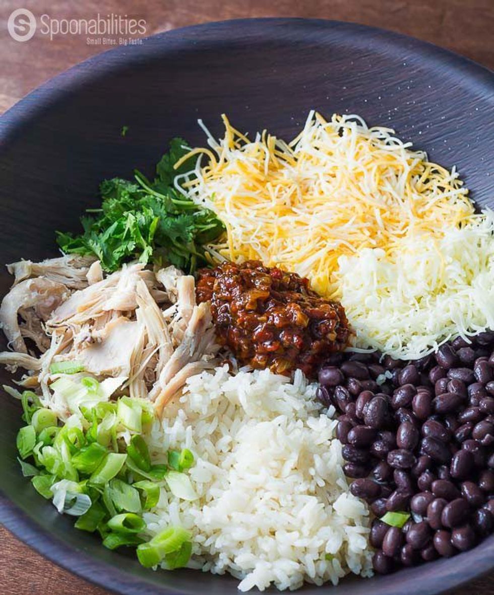 Simple. Quick. Ready. Chile Red Pepper Tapenade, rice, chicken, beans. Green onion & cilantro. Roll up the tortilla. And it\\\'s lunch in under 30 minutes!