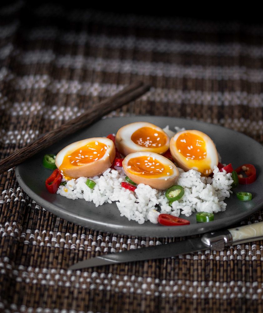 Ramen eggs are very easy to make. Just boil, peel and marinade, then you got yourself something that will beautifully compliment any rice, broth or noodle dish!!